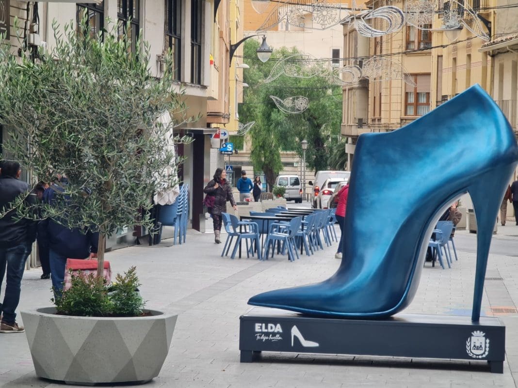 Acompañado por el concejal de Espacio Público e Inversiones, José Antonio Amat, el alcalde de Elda, el socialista Rubén Alfaro, ha presentado la nueva imagen que a partir de hoy lucirá la calle Juan Carlos I y ha destacado que «se han instalado nuevas jardineras y maceteros y, como elementos más llamativos y destacado, también hemos instalado diez zapatos gigantes, decorados con colores vivos para llamar la atención».