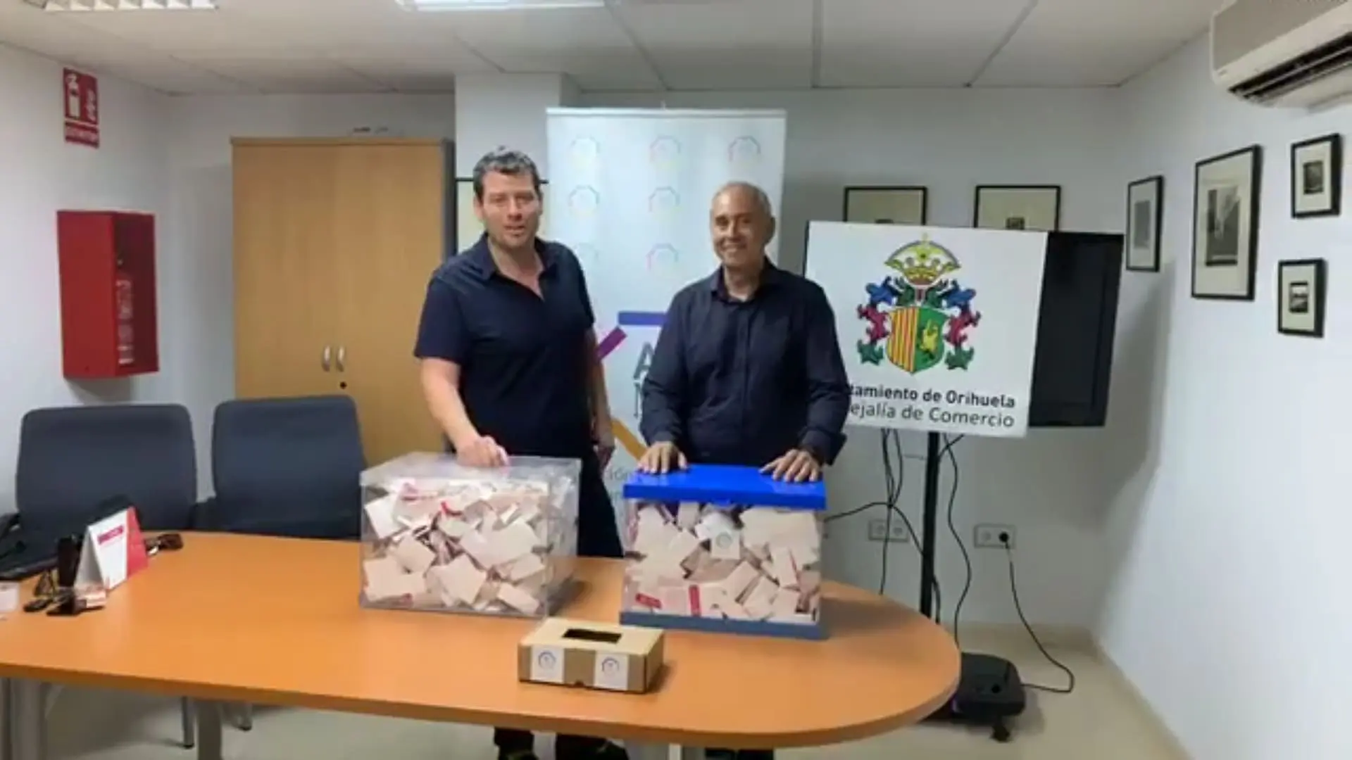El concejal de Comercio, Víctor Bernabéu, participó en el sorteo que la Asociación de Comerciantes del Municipio de Orihuela (ACMO) llevó a cabo con motivo de las Fiestas de la Reconquista, y que tenía como objetivo principal incentivar el comercio local. El edil estuvo acompañado por el presidente de ACMO, Adolfo Valero.
