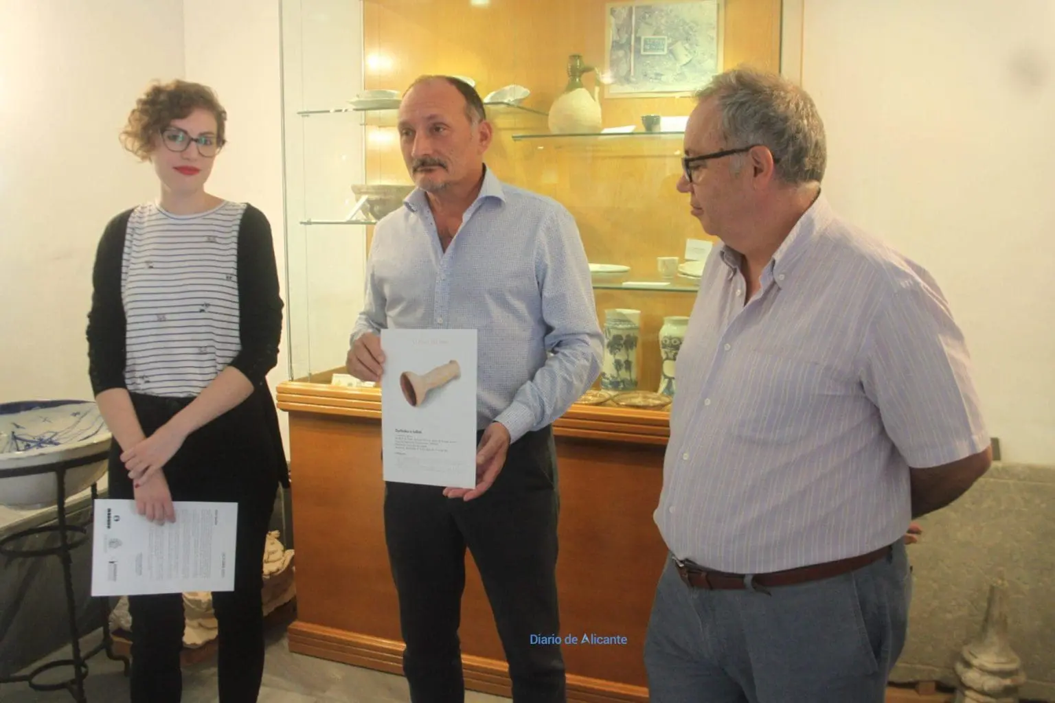 El concejal de Patrimonio Histórico, Rafael Almagro, junto con el arqueólogo municipal, Emilio Diz, y Leticia Pertegal, miembro de la Asociación de Amigos del Museo Arqueológico de Orihuela (ADAMACO), ha presentado esta mañana en el Museo Arqueológico Comarcal de San Juan de Dios la Pieza del Mes correspondiente al periodo de octubre.