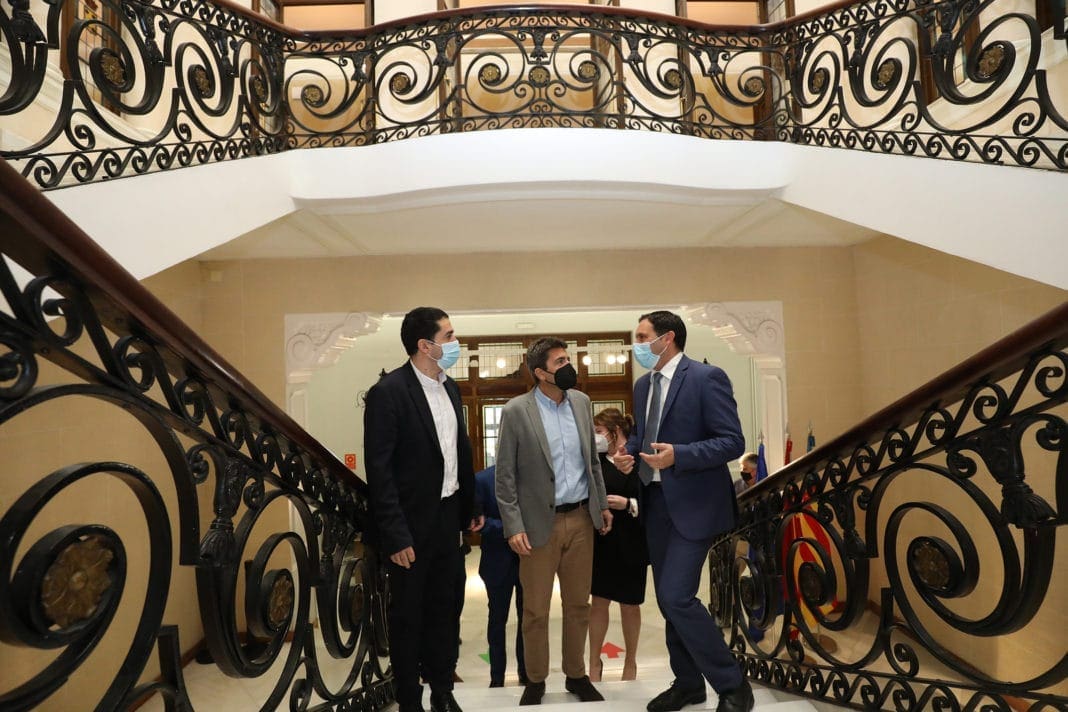 Mazón y Martínez han mantenido un breve encuentro en el Palacio Provincial, donde el presidente de la Diputación de Cuenca ha firmado en el libro de honor de la institución alicantina, un acto en el que han estado presentes la vicepresidenta y diputada de Ciclo Hídrico, Ana Serna, el vicepresidente y diputado de Infraestructuras de Cuenca, Francisco López, así como el portavoz del Grupo Socialista en la Diputación de Alicante, Toni Francés.