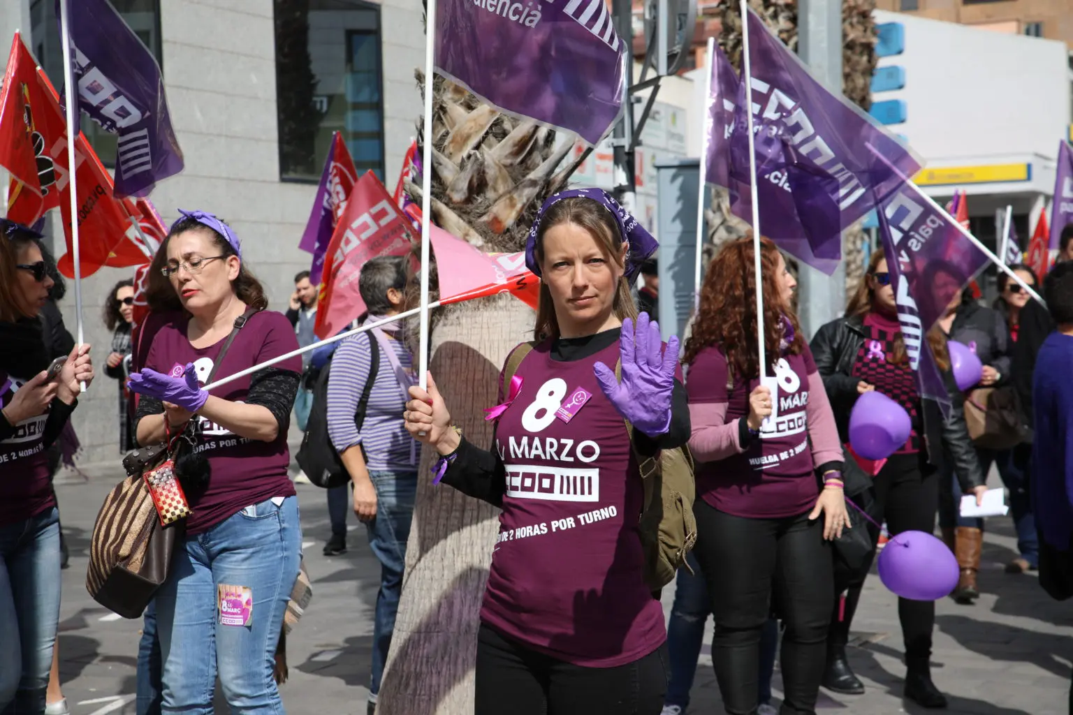 Contra quien o qué se hace huelga” ha sido una de las frases que se ha podido escuchar en la calle y leer en redes sociales, ya que un sector de la población española no ha entendido los motivos de la huelga del 8 de marzo. Al preguntar a las mujeres que con megáfono en mano ensalzaban frases en contra del machismo, explican que el significado de la huelga no es sólo por la desigualdad de la mujer, también se pide que los permisos de maternidad y paternidad posibiliten el reparto de responsabilidades, ya que, el cuidado de hijos e hijas por ambos progenitores es nulo, teniéndose que hacer cargo en su totalidad la mujer y mermando su desarrollo profesional. Las pensiones más bajas son en proporción de las mujeres con una revalorización ridícula del 0,25%. Los sindicatos con algunas pancartas donde se leía “Trabajadoras organizadas luchando por sus derechos”, recorrieron las calles de la provincia alicantina.