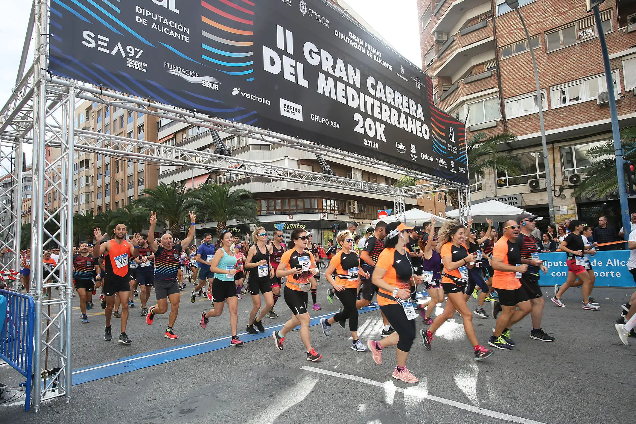 Espectáculo, ilusión, emoción y deportividad han sido los principales protagonistas de la segunda edición de la ‘Gran Carrera del Mediterráneo’ en la que esta mañana se han dado cita más de 2.500 corredores de todo el mundo. Las puertas del Palacio Provincial han sido el punto de partida de esta espectacular prueba que, a lo largo de veinte kilómetros, ha recorrido los municipios de Alicante, Elche y Santa Pola.