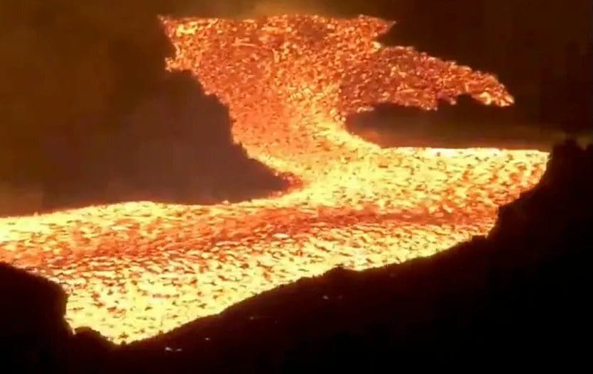 Lejos de calmarse, el volcán de la Palma está en estos momentos con una máxima actividad. Después de la nueva rotura del cono principal este lunes, la salida de la lava ha aumentado. Durante la noche, el volcán ha continuado desbordándose por las cinco bocas activas.