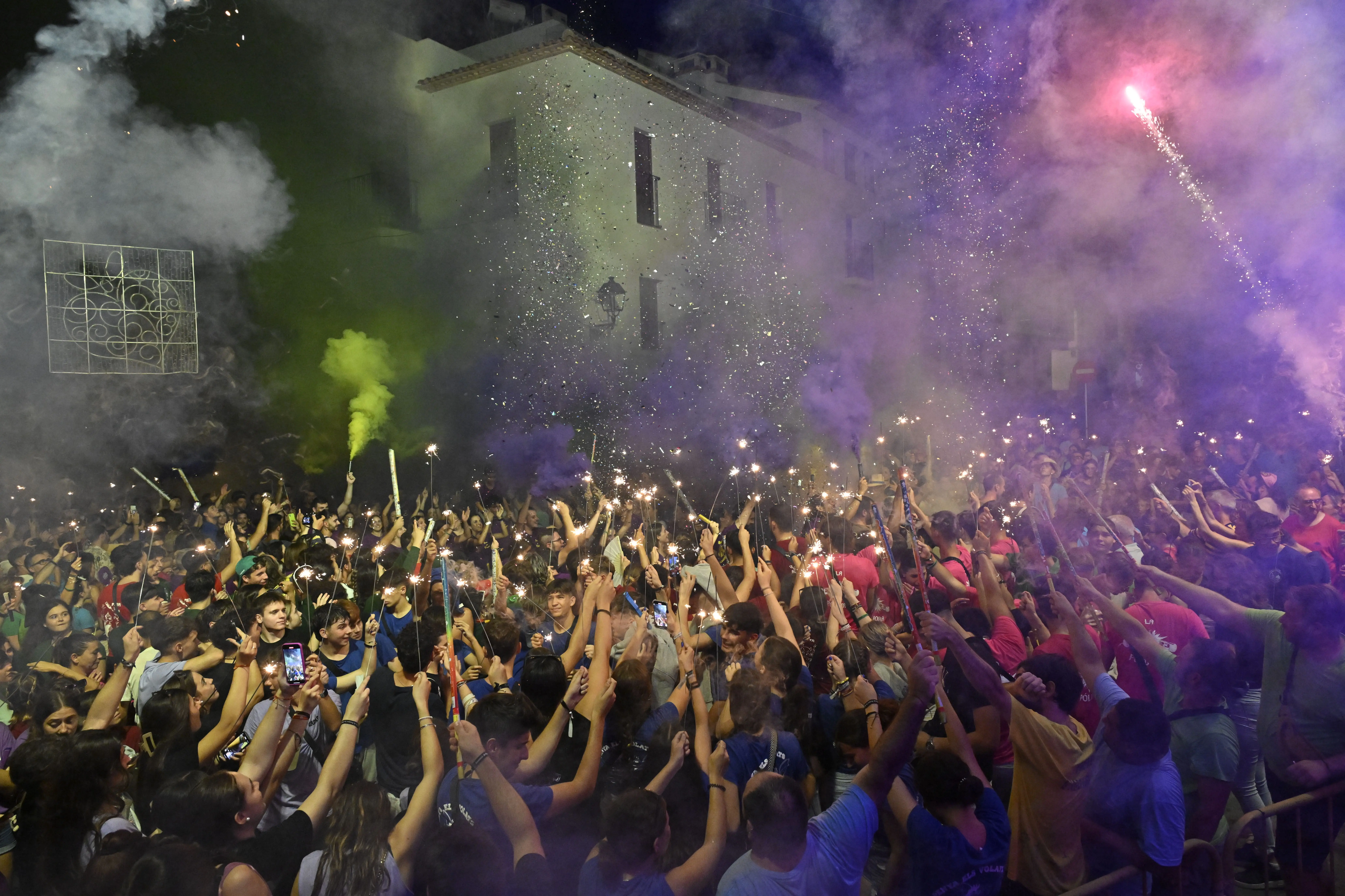 Ayer por la noche se puso punto y a final a “les Festes d´Agost 2023” de La Nucía con el espectacular “Canvi de Majoralia”. Els Majorals 2023- Penya L’Aixeta pasaron el testigo festero a la Penya Els Penjats– Majorals 2024 con un gran acto en la plaça Major con una cuidada puesta en escena, presidido por las banderas de todas las penyas. Después, y como broche final arrancó el Correfoc por todas las calles del pueblo a cargo de Xarxa Teatre.