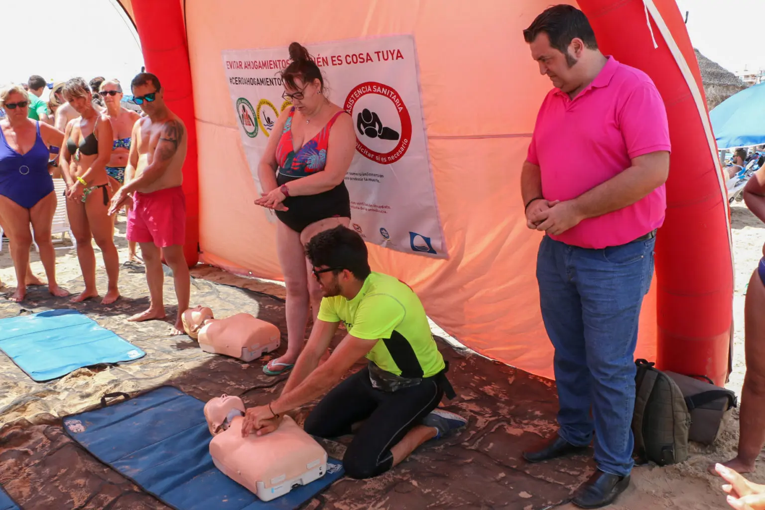 Las personas interesadas en participar en este taller lo podían hacer hasta última hora del día de ayer en una enorme carpa instalada para los talleres y atendida por socorristas y técnicos especializados. Entre las técnicas que se explican se encuentran el boca a boca o la compresión torácica. Los talleres tienen como objetivo prevenir el mayor número de accidentes en el agua, así como a enseñar a los bañistas algunas pautas a seguir para actuar en casos de emergencia.