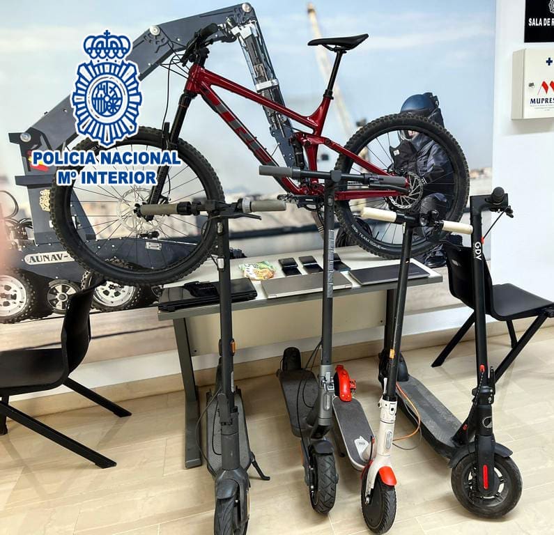 Las gestiones practicadas por Policía Nacional consiguieron identificar a dos de los propietarios de los efectos intervenidos, concretamente fue entregado un VMP (patín eléctrico) a su propietaria, éste lo habían sustraído en el centro donde estudiaba, así como un bicicleta valorada en 2.000 euros, que había sido sustraída en un robo con fuerza el día anterior en una vivienda del Campello.