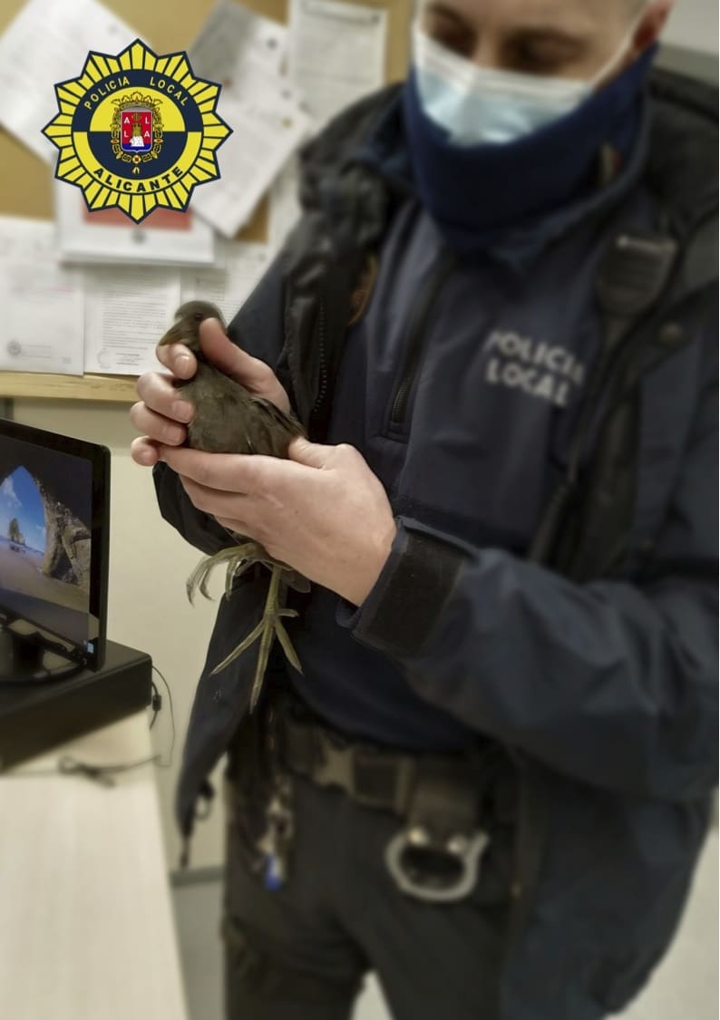 Según fuentes policiales, sobre las tres de la madrugada, cuando se encontraba una patrulla por la avenida de Jijona, localizaron un pájaro en mitad de los carriles de circulación, con riesgo de ser atropellado.
