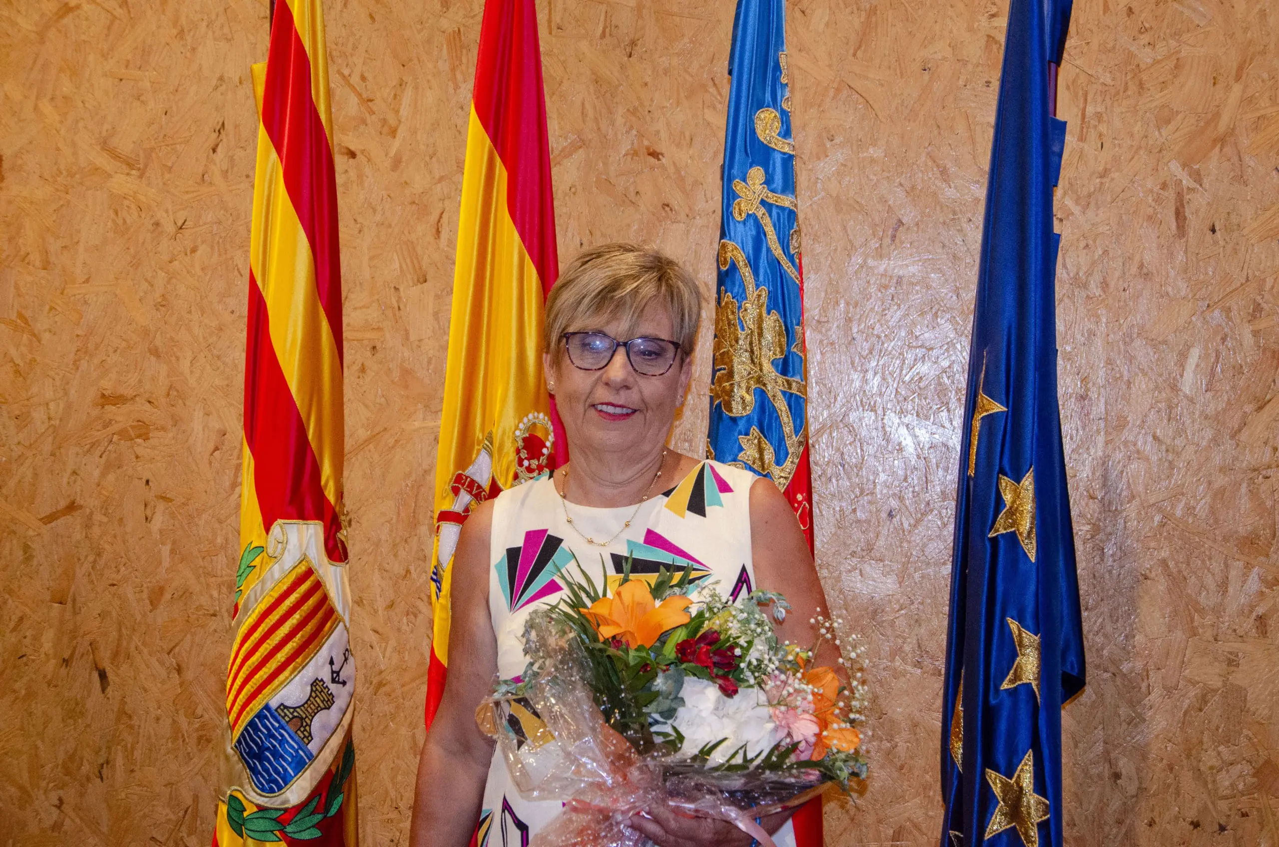La concejal de Fiestas, Nely Baile, se dirigió a María Asunción Pérez para darle «mi más sincera enhorabuena y el agradecimiento por ser una de las personas más comprometidas con la fiesta, un auténtico referente para todos por tu gran amor a la fiesta».