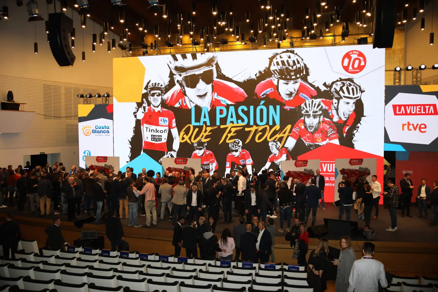 El Auditorio de la Diputación de Alicante acogió ayer la presentación del recorrido oficial de la 74 edición de La Vuelta Ciclista a España. El presidente de la institución provincial, César Sánchez, presidió este acto en el que se dieron cita cerca de 1.500 personas y se desvelaron todos los detalles de las 21 etapas que compondrán el trazado de esta competición internacional. El acto fue presentado por el ex ciclista, Perico Delgado y el periodista deportivo, Carlos de Andrés, invitando a los ciclistas Alejandro Valverde y  Enric Mas al escenario para comentar cada una de las etapas. A este acontecimiento deportivo de La Vuelta, que junto al Tour de Francia y el Giro de Italia se ha convertido en uno de los grandes hitos del calendario ciclista internacional, se dieron cita destacadas personalidades políticas de la provincia y de toda España, y figuras relevantes de este deporte como el director del Tour de Francia, Christian Prudhomme y exciclista Alberto Contador.