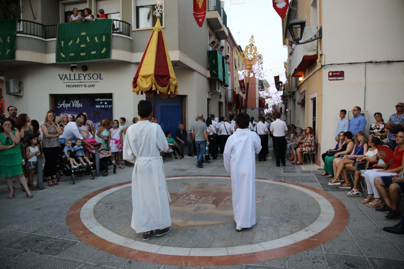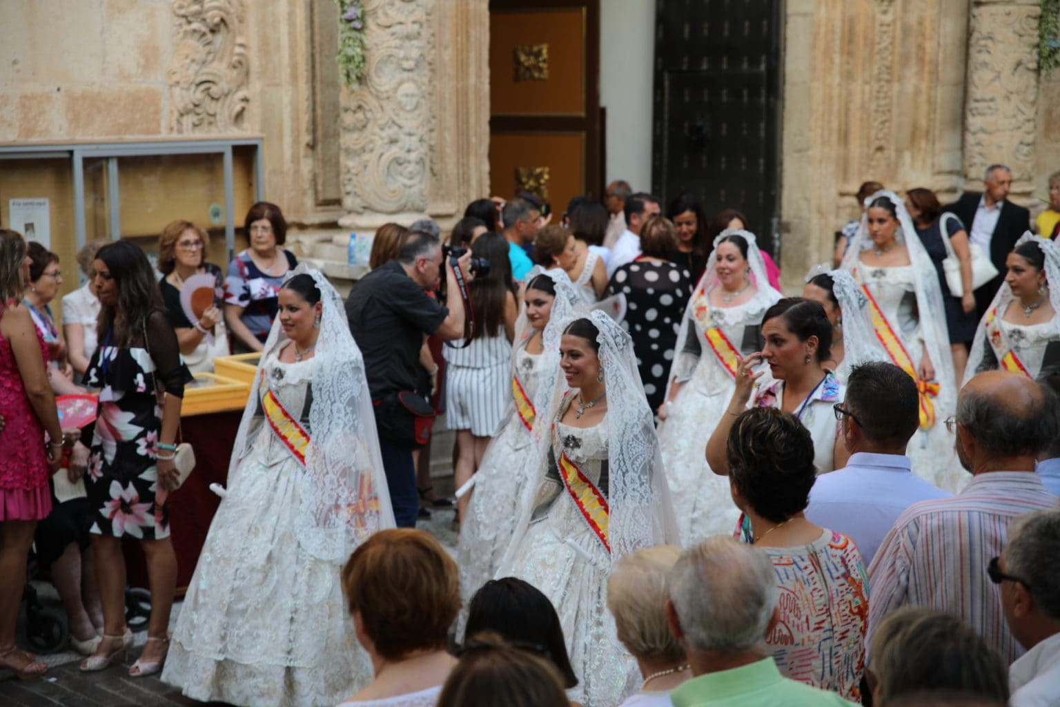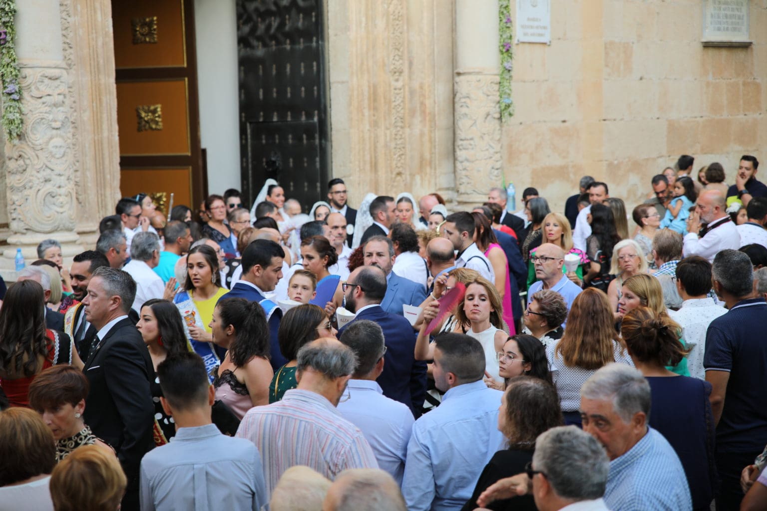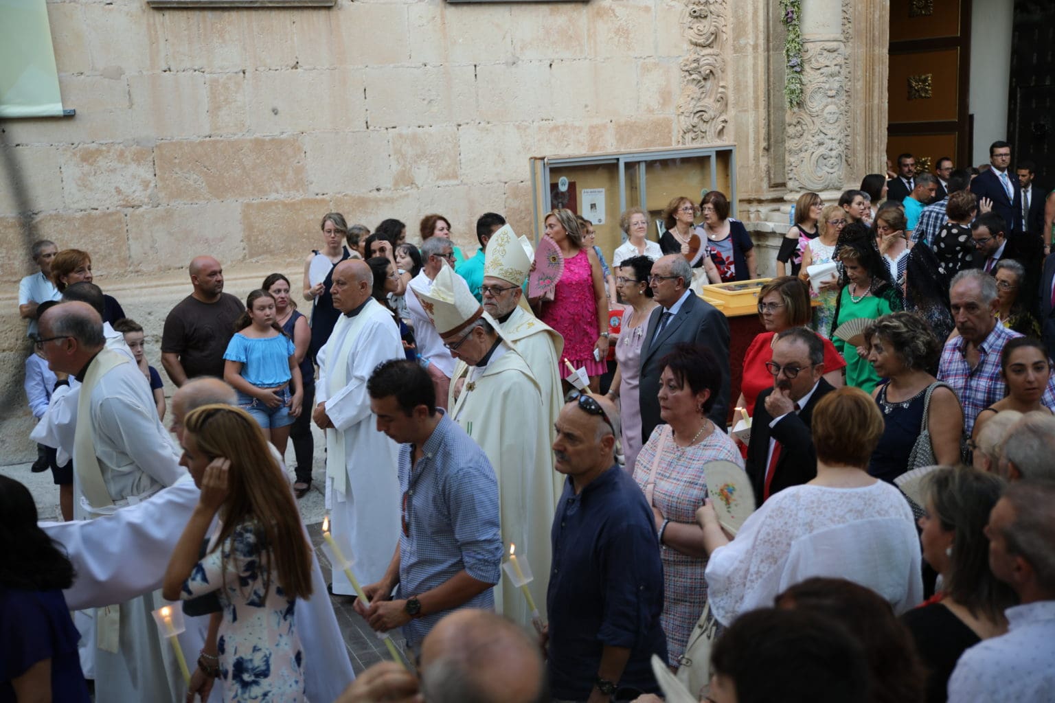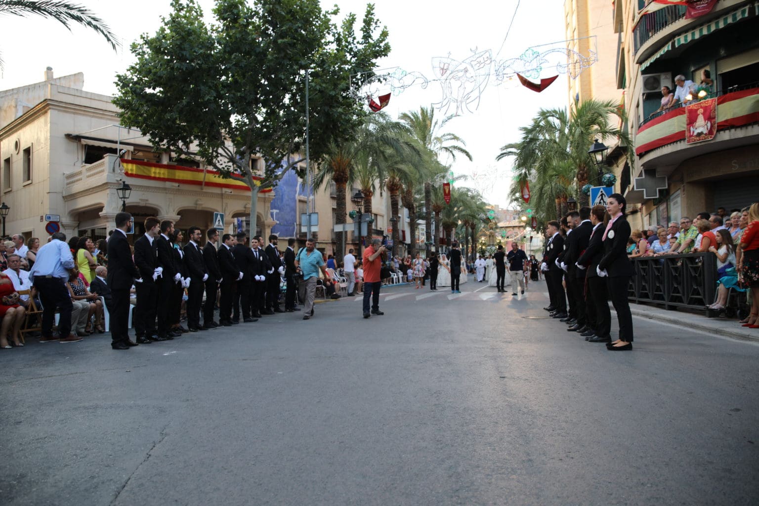 Las campanas de la Basílica de Nuestra Señora del Socorro de Aspe repiqueteaban con regocijo, eran las ocho y la luz del día no quería perderse la salida de la procesión de la patrona del municipio aspense. Los vecinos aprovechando el buen clima esperaban en las calles céntricas que la Virgen llegase hasta ellos para darle sus muestras de cariño. Aspe comparte patrona con el municipio de Hondón de las Nieves y los primeros en salir fueron la agrupación musical de La Serranica. Las Damas de Honor de Aspe y del Hondón de las Nieves, abanderados, festeros y fieles de la patrona acompañaban a la Virgen de las Nieves donde el colorido de los trajes tradicionales y de los porteadores del busto eran la tónica de una procesión que vecinos y curiosos deseaban verla pasar por su casco histórico. Los porteadores del busto, aproximadamente unos cien chicos y chicas que acaban de cumplir los dieciocho años, se turnaban durante el recorrido para llevar sobre sus hombros a su virgen. Las Damas de Honor con su ostentosa indumentaria iban delante de la virgen y detrás de la talla, el clero y autoridades civiles. A las diez de la noche, ante un plaza llena de aspenses y curiosos, se escucharon los cánticos en devoción a la talla de Nuestra Señora de las Nieves en el escenario de la plaza mayor.
