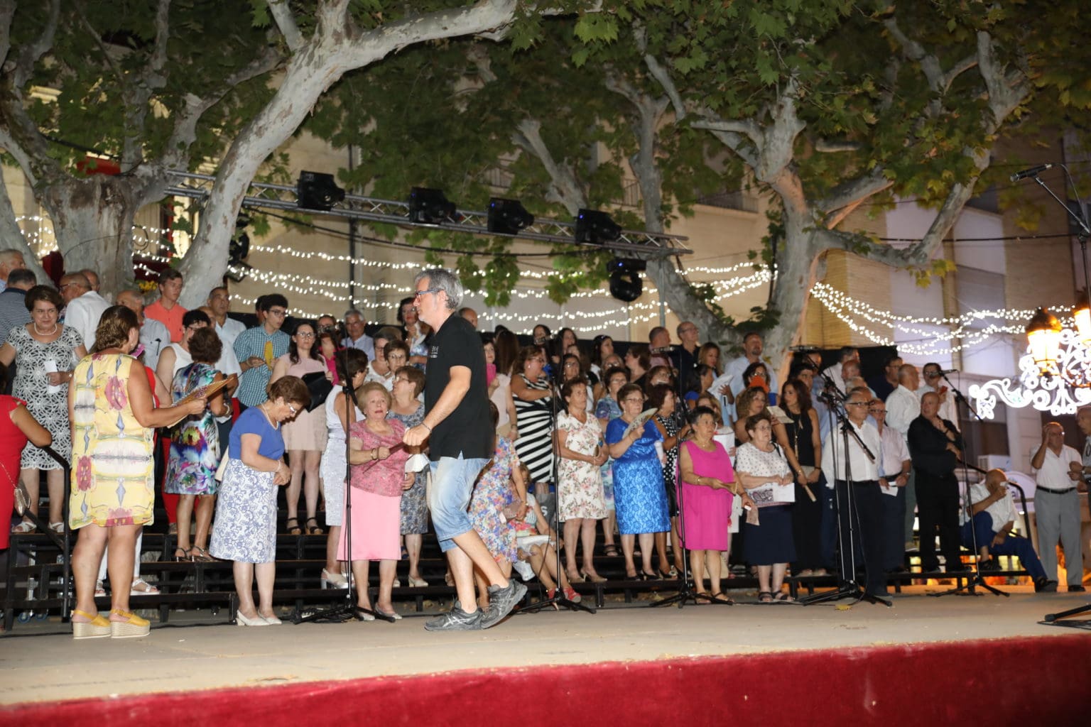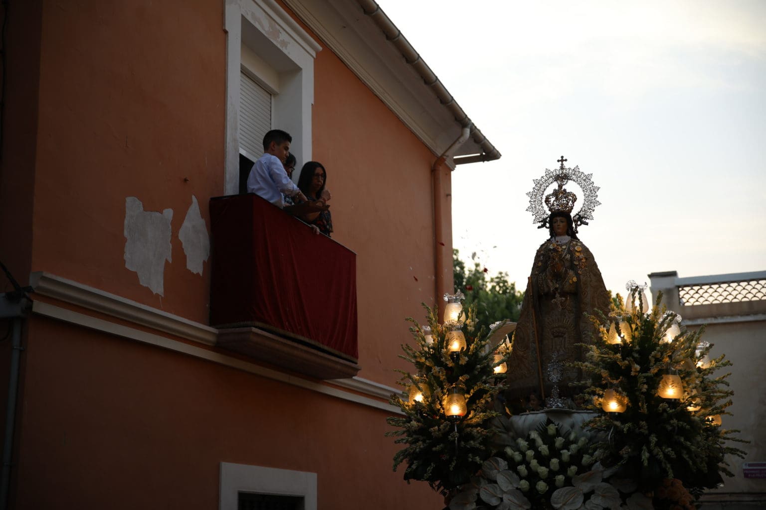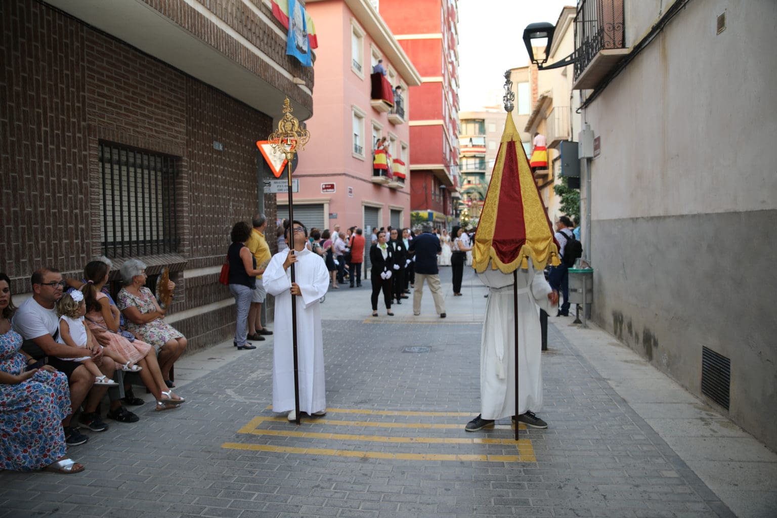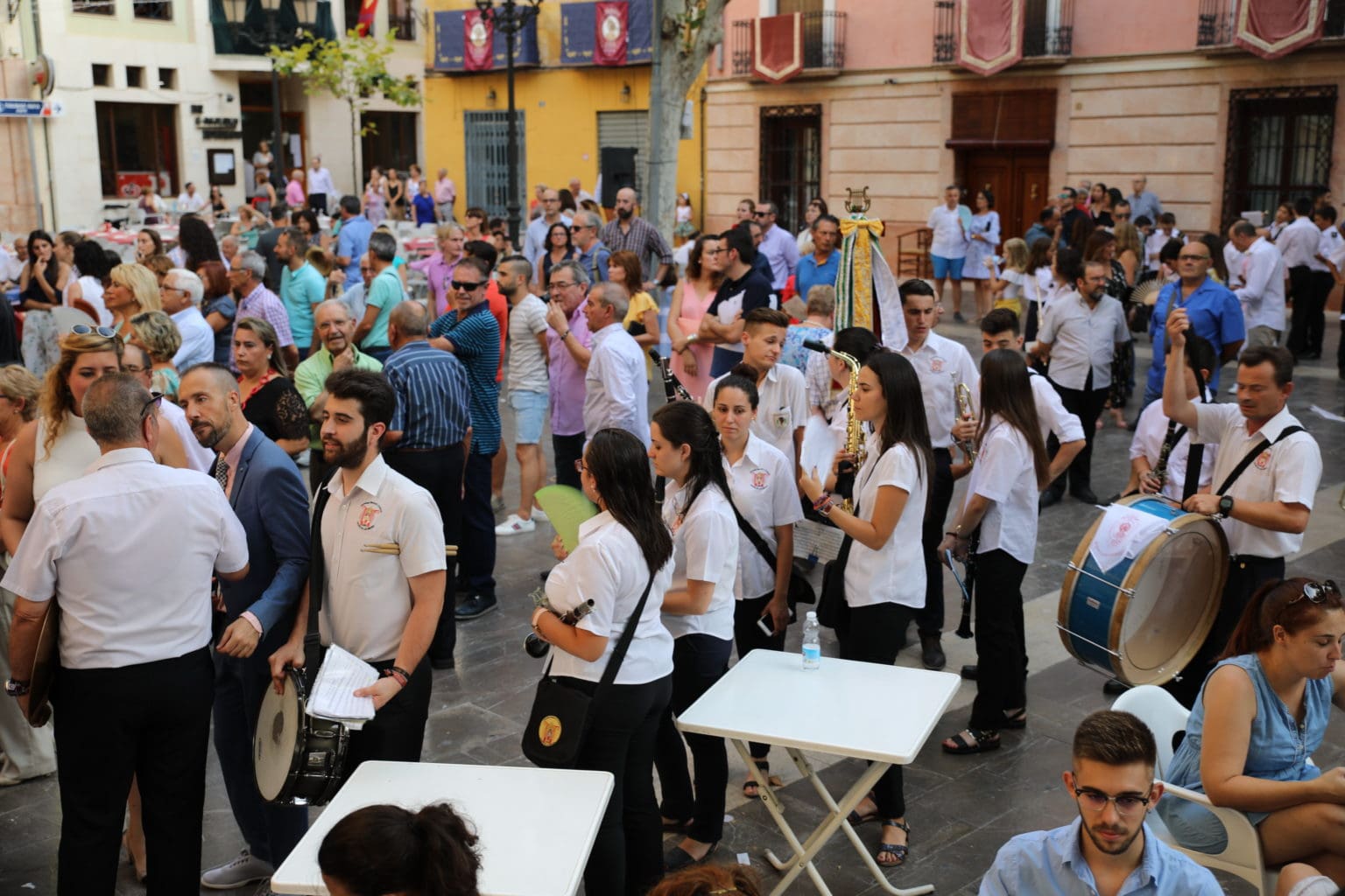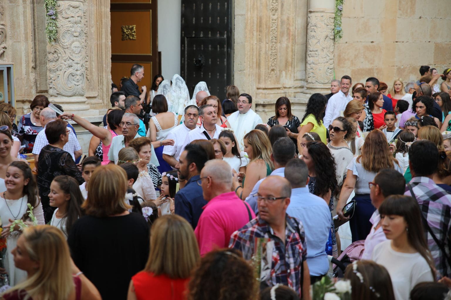 Las campanas de la Basílica de Nuestra Señora del Socorro de Aspe repiqueteaban con regocijo, eran las ocho y la luz del día no quería perderse la salida de la procesión de la patrona del municipio aspense. Los vecinos aprovechando el buen clima esperaban en las calles céntricas que la Virgen llegase hasta ellos para darle sus muestras de cariño. Aspe comparte patrona con el municipio de Hondón de las Nieves y los primeros en salir fueron la agrupación musical de La Serranica. Las Damas de Honor de Aspe y del Hondón de las Nieves, abanderados, festeros y fieles de la patrona acompañaban a la Virgen de las Nieves donde el colorido de los trajes tradicionales y de los porteadores del busto eran la tónica de una procesión que vecinos y curiosos deseaban verla pasar por su casco histórico. Los porteadores del busto, aproximadamente unos cien chicos y chicas que acaban de cumplir los dieciocho años, se turnaban durante el recorrido para llevar sobre sus hombros a su virgen. Las Damas de Honor con su ostentosa indumentaria iban delante de la virgen y detrás de la talla, el clero y autoridades civiles. A las diez de la noche, ante un plaza llena de aspenses y curiosos, se escucharon los cánticos en devoción a la talla de Nuestra Señora de las Nieves en el escenario de la plaza mayor.