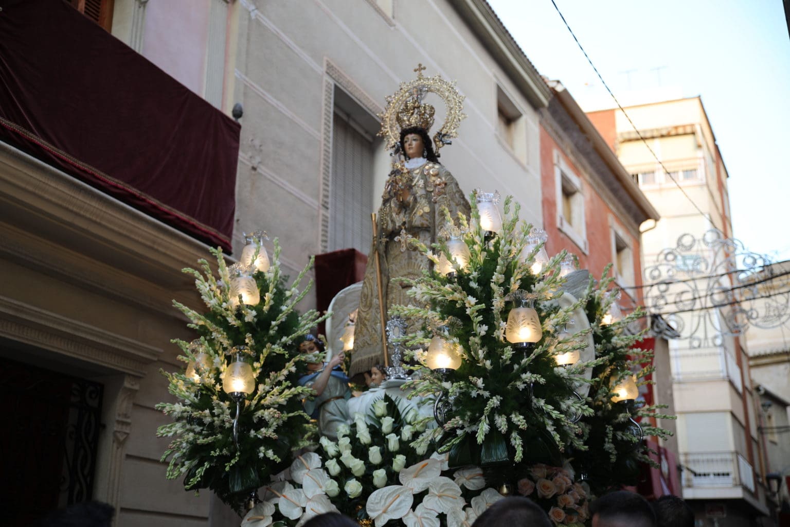 La procesión de la Virgen de las Nieves de Aspe hizo su recorrido con alabanzas de los asistentes