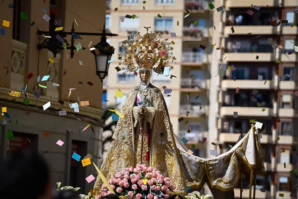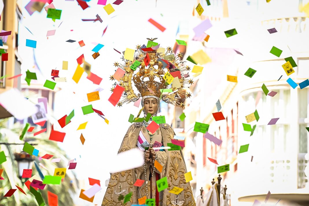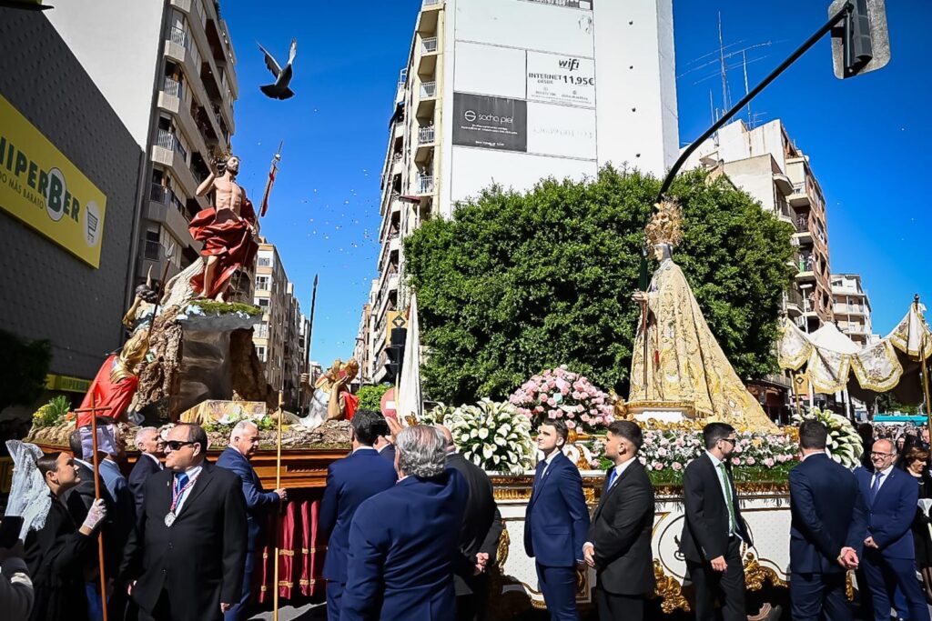 Uno de los momentos más destacados tuvo lugar en torno a las 11:30 horas, en el cruce de Reina Victoria con Jorge Juan, donde se produjo el tradicional encuentro entre ambas imágenes. Durante todo el recorrido, las calles se llenaron de una lluvia de miles de “aleluyas”, pequeñas estampas de colores con alegorías religiosas que los ilicitanos lanzaron desde balcones y terrazas, manteniendo viva una costumbre que se remonta al siglo XVIII.
