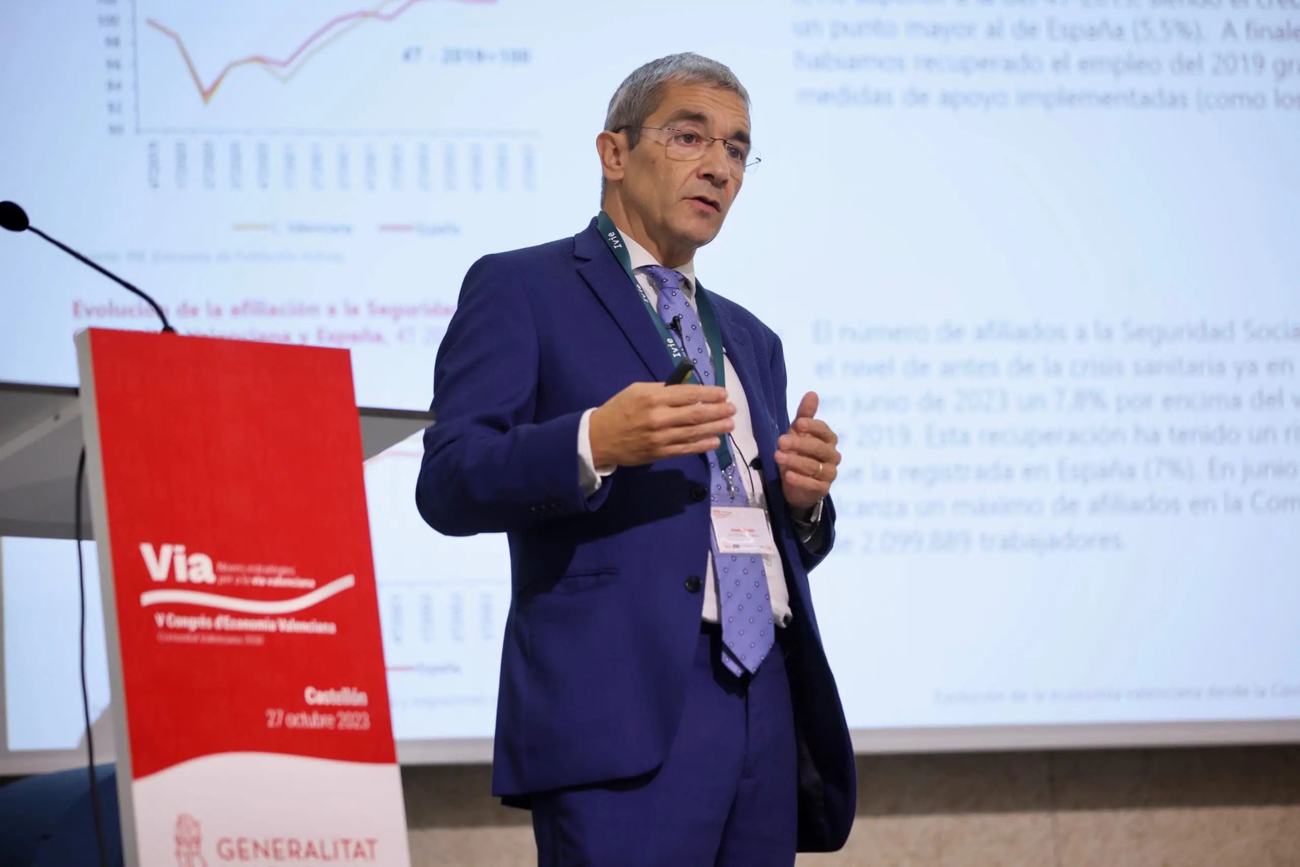 El congreso ha comenzado con la bienvenida por parte del vicerrector de Innovación, Transferencia y Divulgación Científica de la Universitat Jaume I, David Cabedo. A continuación, Joaquín Maudos ha sintetizado en cifras la evolución de la economía valenciana tras la pandemia de 2020. Además del PIB, ha analizado el empleo, el dinamismo empresarial, las exportaciones, la inversión extranjera y la competitividad, entre otros aspectos.