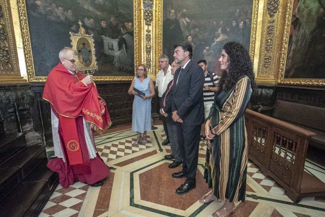 Luis Barcala, alcalde de Alicante, ha acompañado a la concejala de Fiestas y Síndica, Cristina Cutanda, en el protocolario acto de apertura del habitáculo del camarín del monasterio, donde se venera la Santa Faz.