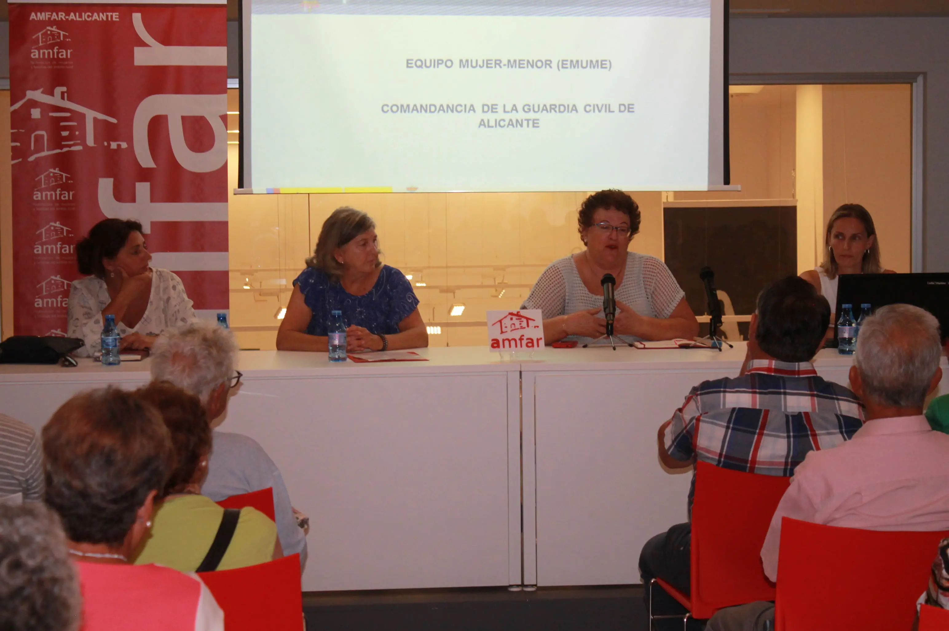 La cita, que tuvo una gran asistencia de vecinos y vecinas del municipio, contó la presidenta de Asaja la Vila, Marta Orts, a la presidenta de Amfar Alicante, Tere Antón, la concejala de Bienestar Social e Igualdad del Ayuntamiento de la Vila Joiosa, Asun Lloret, y una ponente de la Unidad de Protección de la Mujer y Menor de la Comandancia de la Guardia Civil de Alicante.