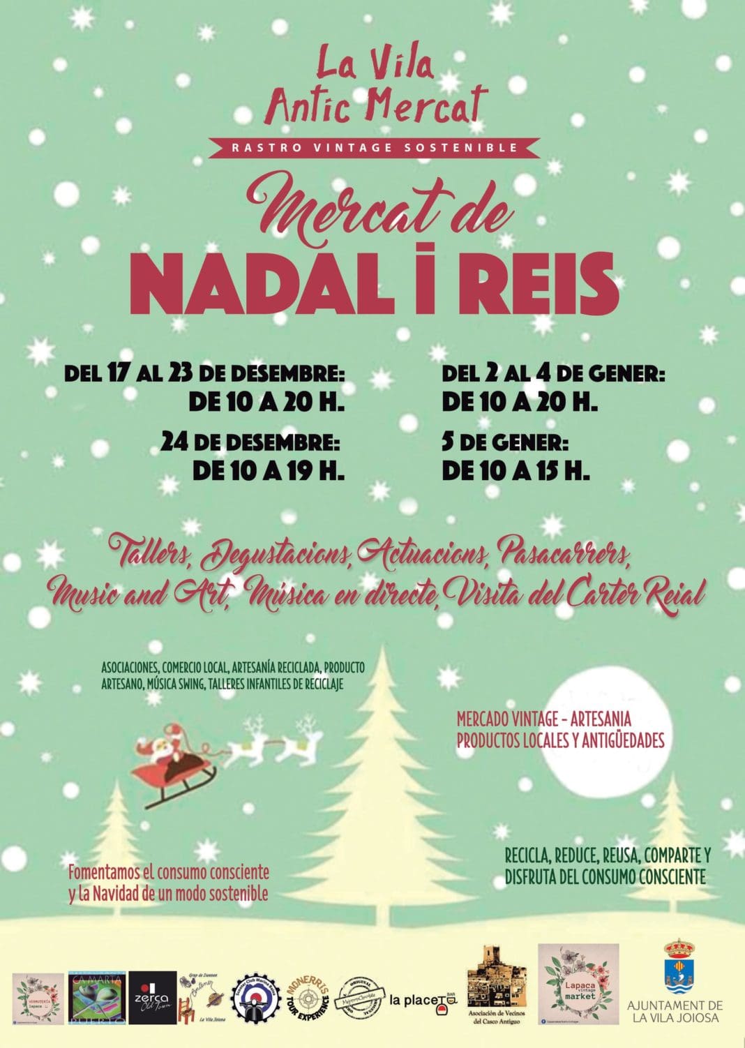 El mercado ofrecerá puestos de artesanía, música en directo, talleres infantiles, actividades para aprender y concienciar sobre el reciclaje, degustación de productos típicos y antigüedades. El día 22 de diciembre, a las 18.30 horas, se iniciará un pasacalles navideño a cargo de la colla Els Valerios que finalizará en el mercado donde se ofrecerá una chocolatada infantil. Además, el cartero real hará una visita para que todos los niños puedan dejar sus cartas.
