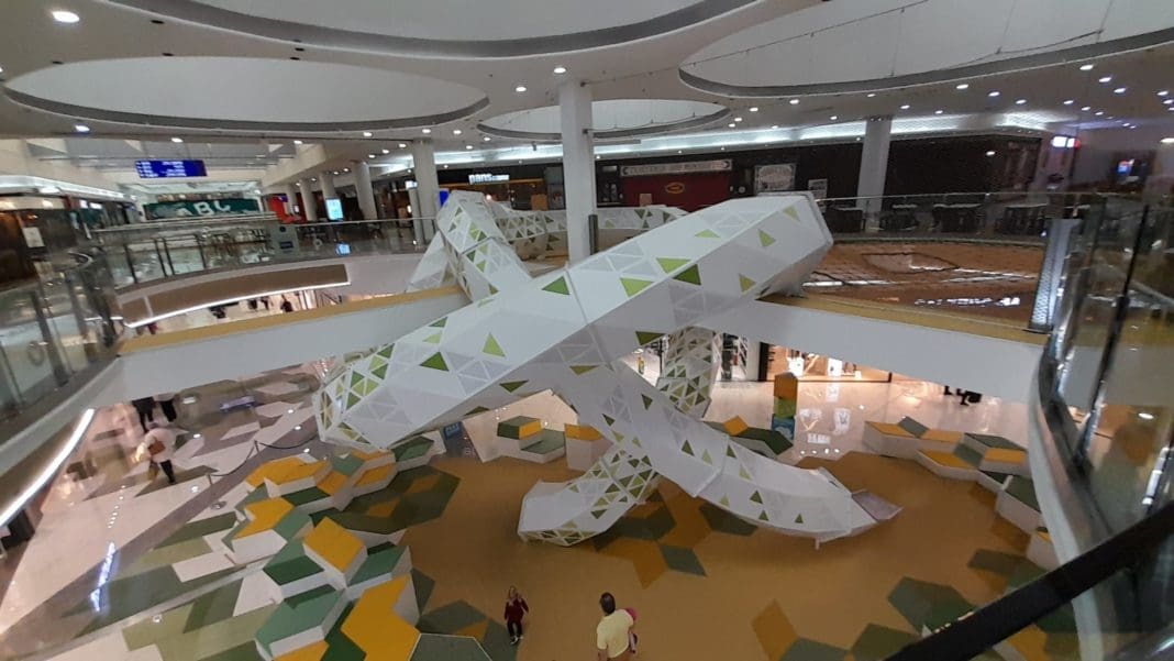 El objetivo ha sido unir las dos plantas del centro comercial y se ha jugado con los colores del nuevo posicionamiento del centro. «Se ha querido integrar el elemento icónico de la ciudad de Elche que es la palmera en los colores del centro comercial. El amarillo del fruto de la palmera del dátil que se ha utilizado en las áreas de descanso y terrazas del parque y el verde de la palma de la palmera», explica el director gerente de L’Aljub. La intención es que las familias no solo vayan a hacer compras sino que también puedan «tener un momento de relax«. Los domingos solo está abierta la planta segunda de restauración donde estará habilitado «el tunel de escalada con la red».