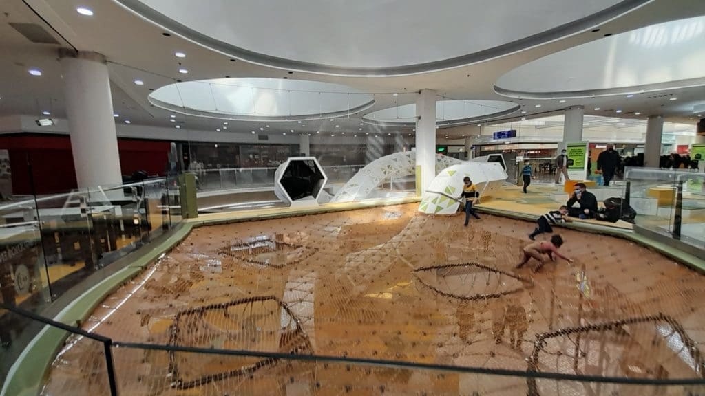El Centro Comercial L’Aljub estrena el parque de aventuras interior más grande de la provincia. Con más de 100 metros cuadrados, conecta las dos plantas del recinto, con la idea de que los más pequeños puedan disfrutar de todo un laberinto de diversión con dos grandes loops, que incluye un tobogán de más de cuatro metros, zona de escalada, zona de juegos múltiples y un túnel de acceso a una divertida red. En total, seis metros de juegos en altura. El proyecto es parte de la nueva estrategia «Destino Oasis» que busca una mayor interacción con sus visitantes, a la vez que humanizar y conectar emocionalmente con su público. Un 55% de los visitantes son familias, señala el director gerente del centro, Germán López.