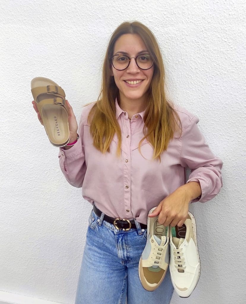 Sus zapatillas están hechas con piel vegana para las partes de mayor fricción como son la puntera o la talonera, tejidos reciclados procedentes de botellas de plástico o algodón reciclado y plantillas extraíbles, fabricadas con material procedente de colchones y almohadas trituradas y recicladas. Como novedad incorpora material orgánico de café en la suela. “Hay empresas que reciclan cápsulas de café y el poso del café se recoge e introduce en la suela para disminuir el uso de material de extracción directa o materiales vírgenes”, explica la fundadora de Laüd Recycled.