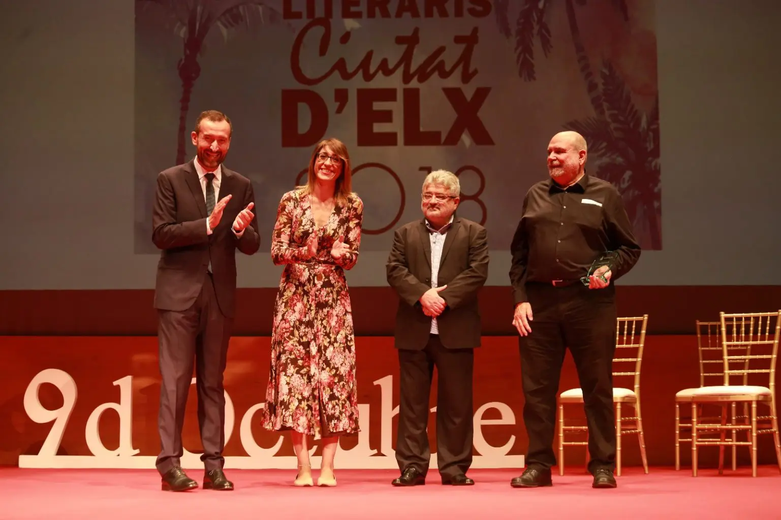 El evento ha comenzado con la entrega de los premios literarios “Ciutat d’Elx”. Ha sido el alcalde acompañado por la concejala de Cultura, Patricia Macià, quien ha hecho entrega del premio de narrativa “Antoni Bru” a Josep Franco Martínez con su obra “Artal” y del premio de poesía “Festa d’Elx” a Josep Fàbrega i Selva y su obra “Postres de poeta”.