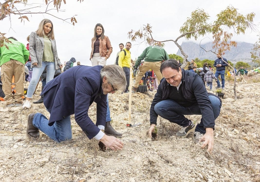 Hoy, 31 de enero, se conmemora el “Dia de l’Arbre de la Comunitat Valenciana”. Para conmemorar su 34º edición la Generalitat ha elegido Finestrat y concretamente, la microrreserva de flora “El Tossal dels Corbs”. Allí cerca de 600 escolares de los dos centros educativos, “Puig Campana” y “Balcó de Finestrat” han plantado 880 ejemplares de especies autóctonas como coscoja, algarrobo y lentisco.