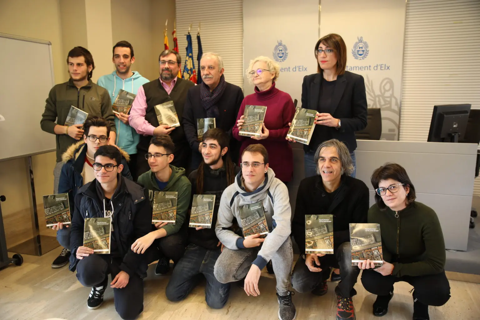 La edil de Cultura, Patricia Macià, presentó en el día de ayer el libro “180 años de periodismo en Elche (1836-2016)”, una iniciativa de la Asociación de Informadores de Elche con la que se ha querido plasmar la historia del periodismo ilicitano. En la presentación han estado los autores del libro, Miguel Ors Montenegro y José Vicente Castaño, la presidenta de la Asociación de Informadores, Genoveva Martín, y el profesor del IES Carrús, Toni Talens. Tal y como ha explicado Macià, “el libro recoge la exposición realizada en La Llotja en octubre de 2016 y que posteriormente recorrió varios centros educativos. Ha sido impreso por los alumnos del ciclo formativo de impresión del IES Carrús de Elx que han hecho una gran labor y han conseguido un trabajo muy profesional. El libro se distribuirá en bibliotecas, salas culturales y centros educativos para que esté al alcance de la población”.