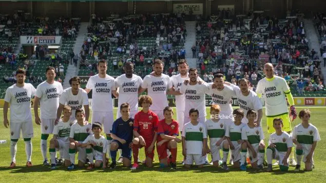 Incidencias: partido correspondiente a la jornada 34 del Grupo III de Segunda B disputado en el estadio Manuel Martínez Valero ante 7.154 espectadores. Antes del comienzo del encuentro los jugadores del Elche saltaron al terreno de juego con una camiseta de ánimo a Corozo y se guardó un minuto de silencio por el reciente fallecimiento de José María Fernández Treviño, exjugador franjiverde.