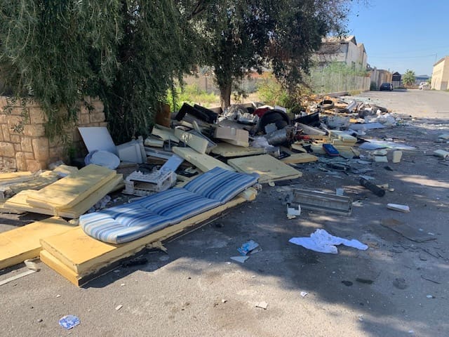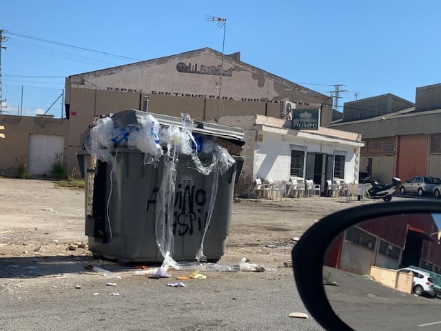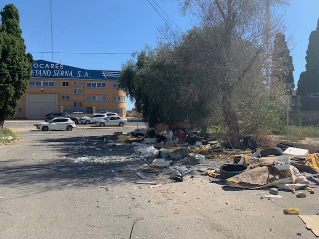 No obstante, el problema más acuciante para los usuarios del polígono es la práctica diaria de desguaces de todo tipo de enseres, electrodomésticos, aparatos, motores, etc, destinados a una chatarrería y del que el presidente indica que «hay un efecto llamada» para otras personas que arrojan basura en distintos puntos. «A las 11 o las 12 de la mañana ves en el polígono desmontando y desguazando cosas a plena luz del día». La escena se repite «en todas las esquinas». «Se ha convertido en un auténtico desguace el polígono». Pero el problema va más allá. «A nosotros nos han pegado fuego dos veces los contenedores con el riesgo de quemar la nave. Ellos lo queman y es el modo más fácil de poder sacar el metal».
