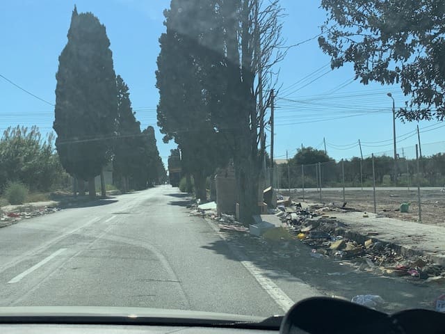 También Mariló Perea explica que «durante todo el año se acumula basura, pero montañas de basura» y relata que «a veces tenemos que esquivar los montones que se hacen porque ya invaden la calzada. Cristales rotos hay por todos lados». Ella ha enviado cinco escritos de queja al Ayuntamiento en los últimos tres años y apoya su testimonio con un álbum de fotos de acumulación de basura en zonas que precisamente el martes pasado, 10 de octubre, han recogido los servicios municipales. Tres semanas antes de que alicantinos y alicantinas recorran especialmente la calle principal de Vial de los Cipreses rumbo al cementerio por la festividad de Todos los Santos.