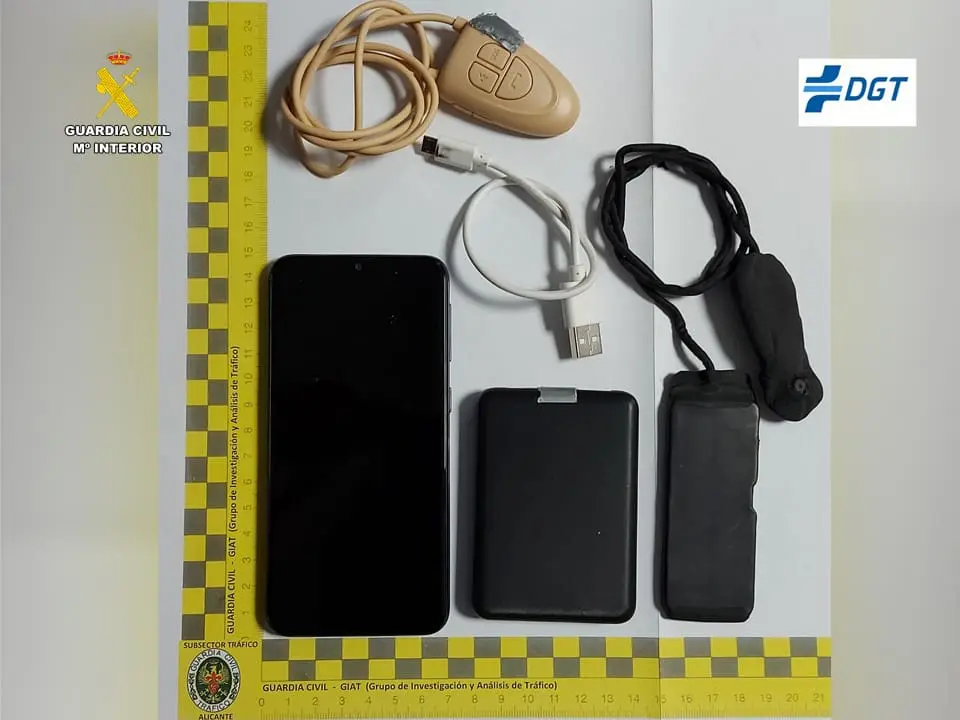 Dichos dispositivos fueron intervenidos, y ambos individuos fueron denunciados conforme a la Ley de Seguridad Vial por utilizar dispositivos de intercomunicación no autorizados reglamentariamente en las pruebas para la obtención y recuperación de permisos y otras autorizaciones administrativas para conducir, lo que supone una infracción muy grave con