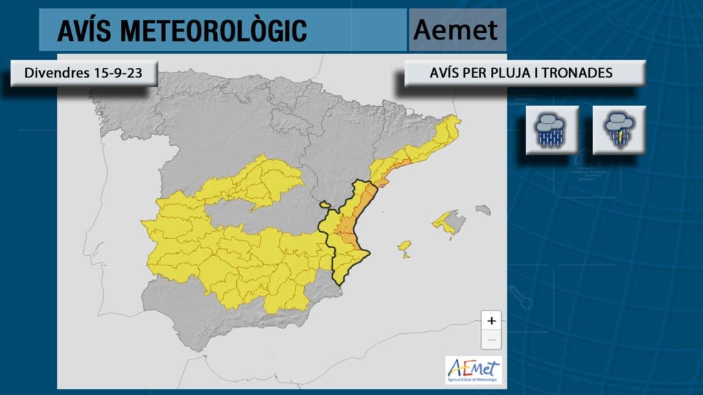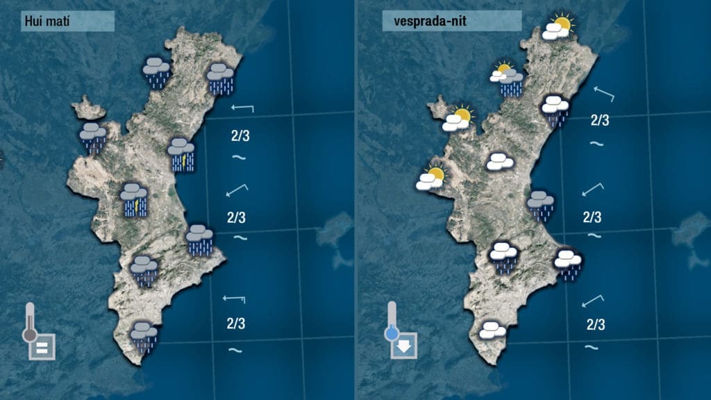 Empezamos el día con aviso naranja al litoral de Castelló, de València y del norte de Alicante que es en teoría donde la lluvia será más intensa y puede llegar a ocasionar problemas, pero no podemos descartar que al resto localmente también pueda llover con intensidad porque el aviso es amarillo.