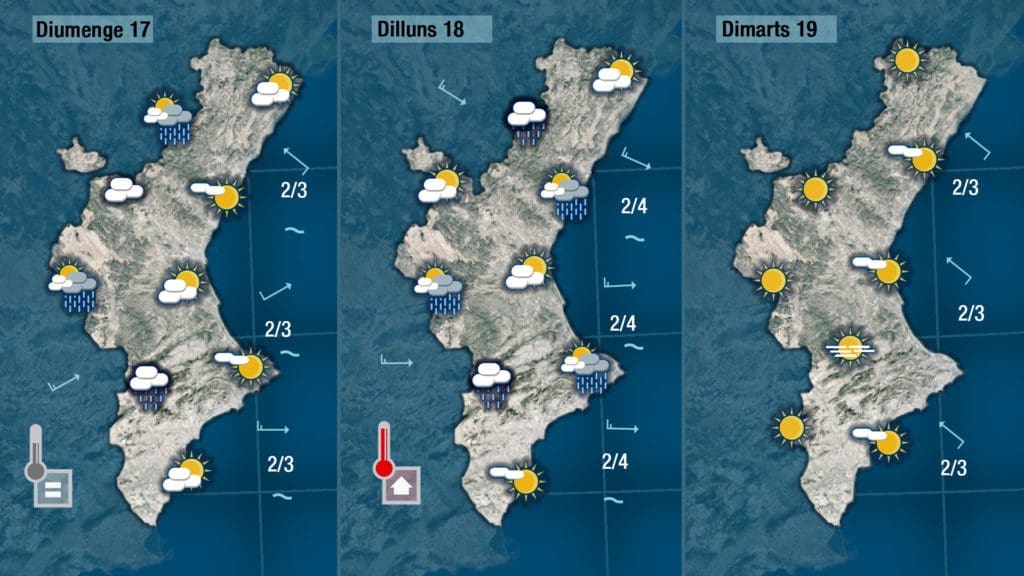 Una perturbación que tendrá poca incidencia en la Comunitat. Podrá dejar chubascos por el interior entrada la madrugada…pero no llegarán a la costa.