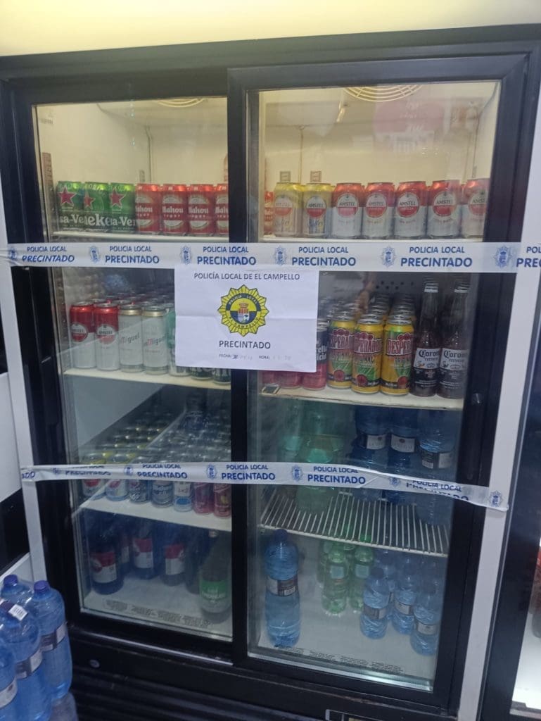 En aplicación de la normativa de la Conselleria de Salud Pública de la Generalitat Valenciana, efectivos de la Policía Local de El Campello precintaron en la madrugada del domingo las máquinas expositoras y refrigeradoras de un local comercial “24 horas” en el que se vendía alcohol a menores de edad.