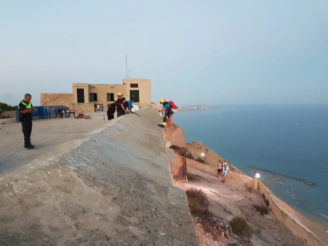 La concejalía de Seguridad informa que hoy los Bomberos del Servicio de Prevención, Extinción de Incendios y Salvamento (SPEIS) del Ayuntamiento de Alicante han rescatado a tres menores de 10,14 y 17 años que se habían quedado atrapados una zona de difícil acceso del lateral del Castillo de Santa Bárbara que da al Baluarte de la Mina con una altura de ocho metros.