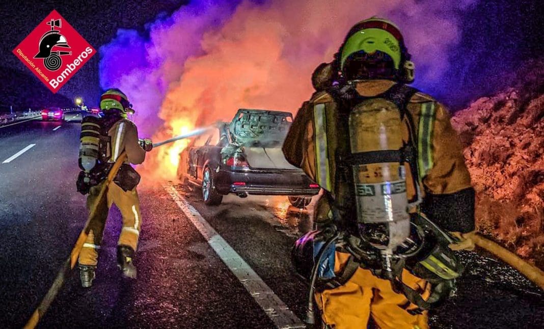 Los bomberos detienen el incendio de un vehículo en la AP-7 entre Villajoyosa y Campello