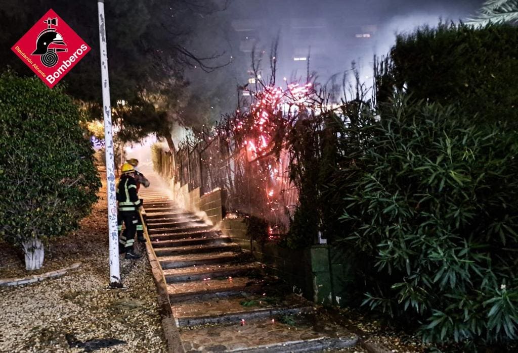 A la llegada del equipo de Bomberos, compuesto por 1 BUP (Bomba Rural Pesada), 1 cabo y 4 bomberos del parque de Benidorm, se implementaron medidas inmediatas para controlar el incendio. Este afectaba a un vallado de cipreses y varios pinos, evitando así su propagación peligrosa.