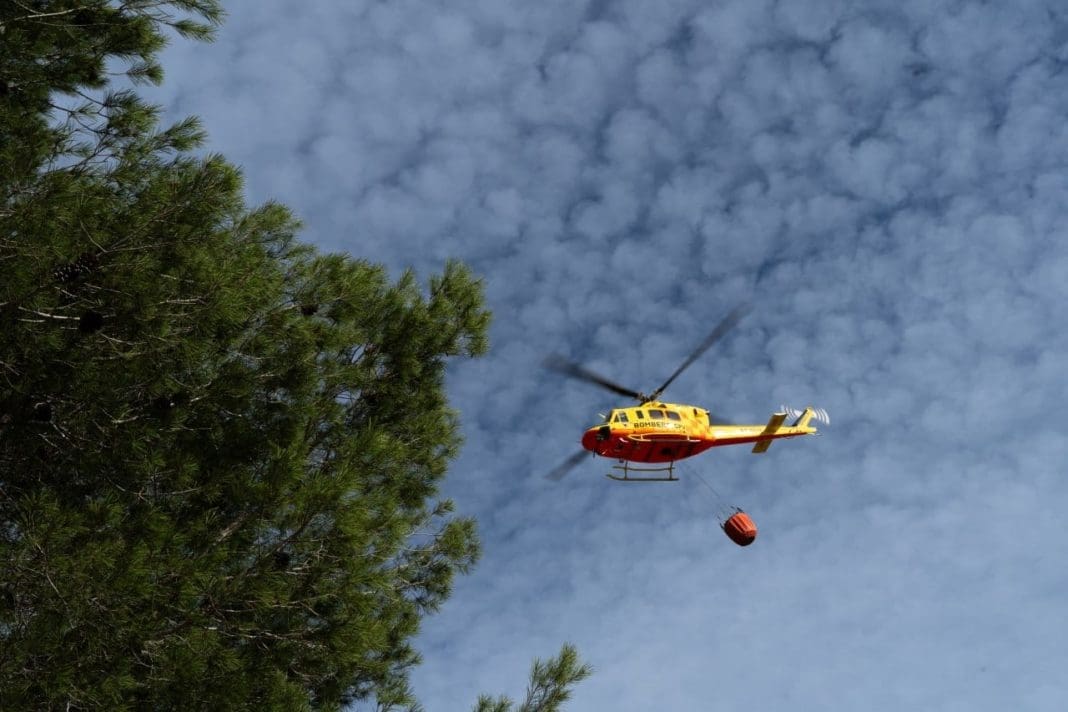 Las condiciones meteorológicas han permitido esta mañana la incorporación de medios aéreos en las tareas de extinción del incendio declarado este pasado jueves en Montitxelvo. Tras dos días de fuertes vientos en los que no han podido trabajar, los helicópteros se han unido a la lucha contra las llamas que ya han quemado 2.580 hectáreas en un perímetro de 38 kilómetros y que han afectado a siete municipios de la provincia de Valencia.
