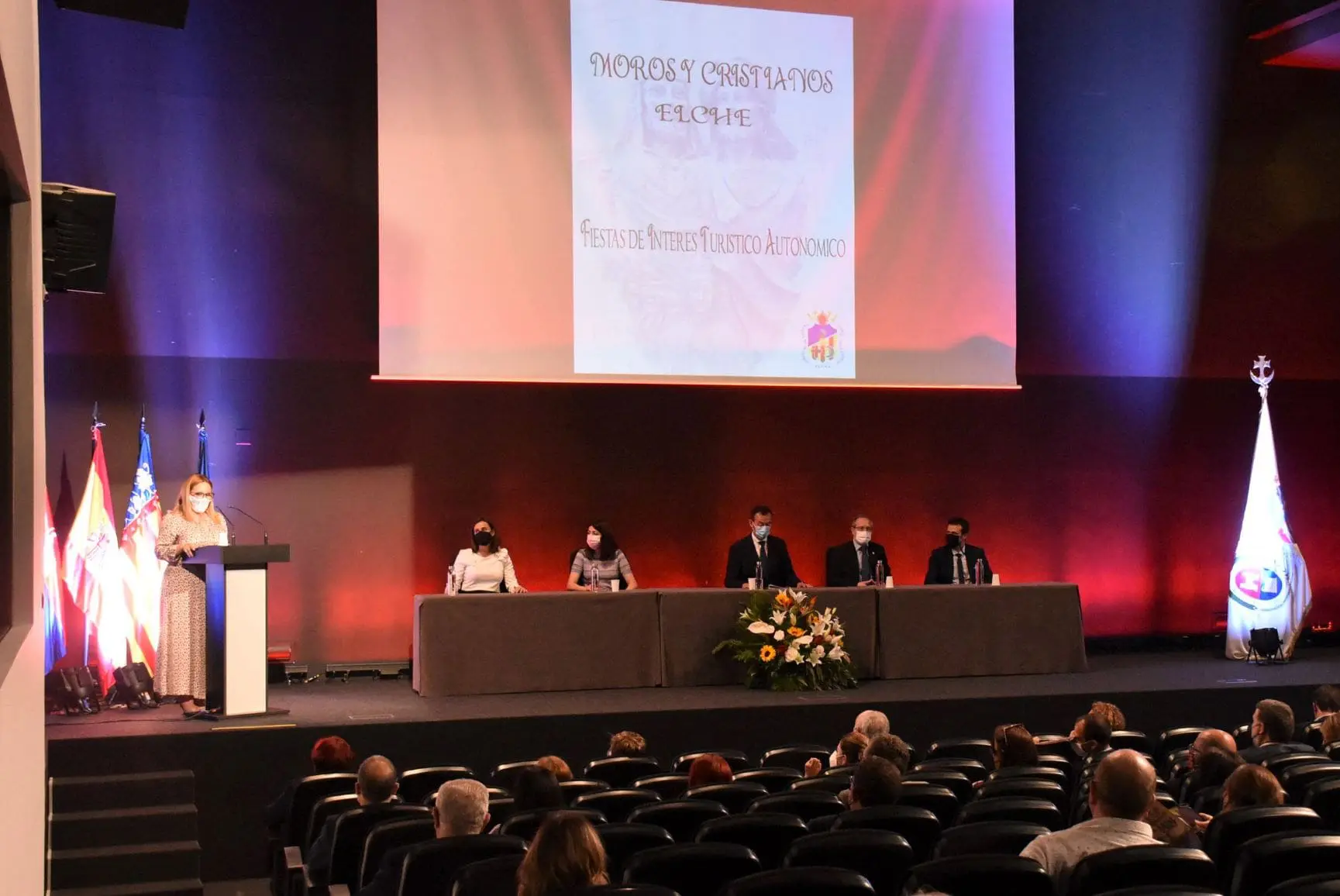 El Centro de Congresos acogió ayer el reconocimiento de los Moros y Cristianos de Elche como Fiesta de Interés Turístico de la Comunitat Valenciana en honor a la Mare de Déu de l’Assumpció. Un título honorífico que fue concedido a la asociación festera el pasado 9 de marzo por Turismo de la Comunidad Valenciana.