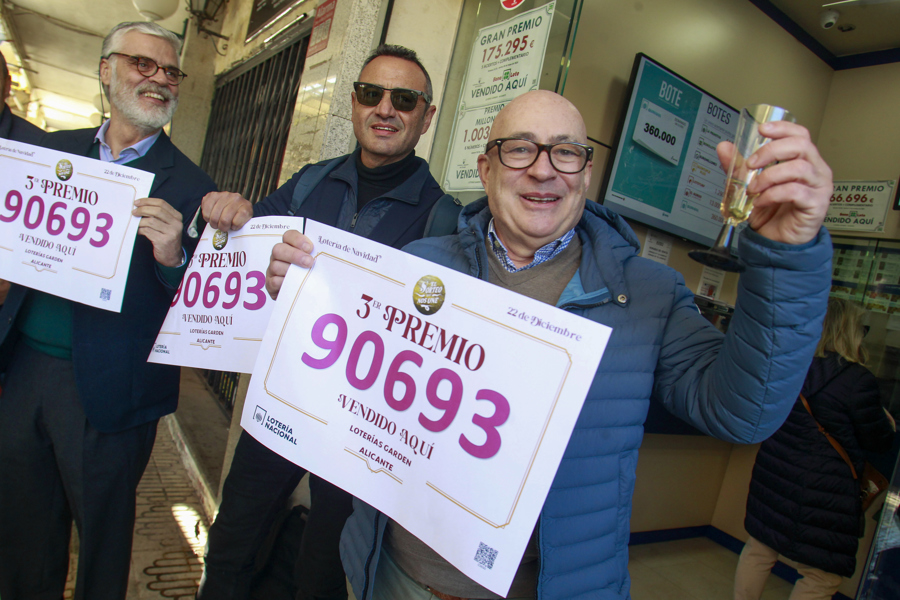 El tercer premio, correspondiente al número 90.693, ha sido cantado a las 11:12 horas y ha dejado 50.000 euros por décimo. En la Comunitat Valenciana, este número ha repartido 11.950.000 euros, con un protagonismo claro de la ciudad de Alicante.