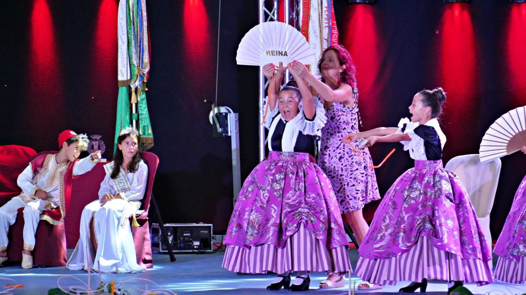A continuación comenzaron a subir al escenario los cargos infantiles de 2024 que acaban su mandato y los nuevos representantes de este año, que son Lucas Baile Bonmatí y Candela Baile Bonmatí de Beduinos, Enma Gabino Reyes de Llaganyosos, Manuel Sempere Durá de Piratas, Isabella Leonís Garri de Astures, Sofía Alario Piedecausa de Templarios y, por último, Argentina María Baile Bonmatí de la comparsa Pescadores.
