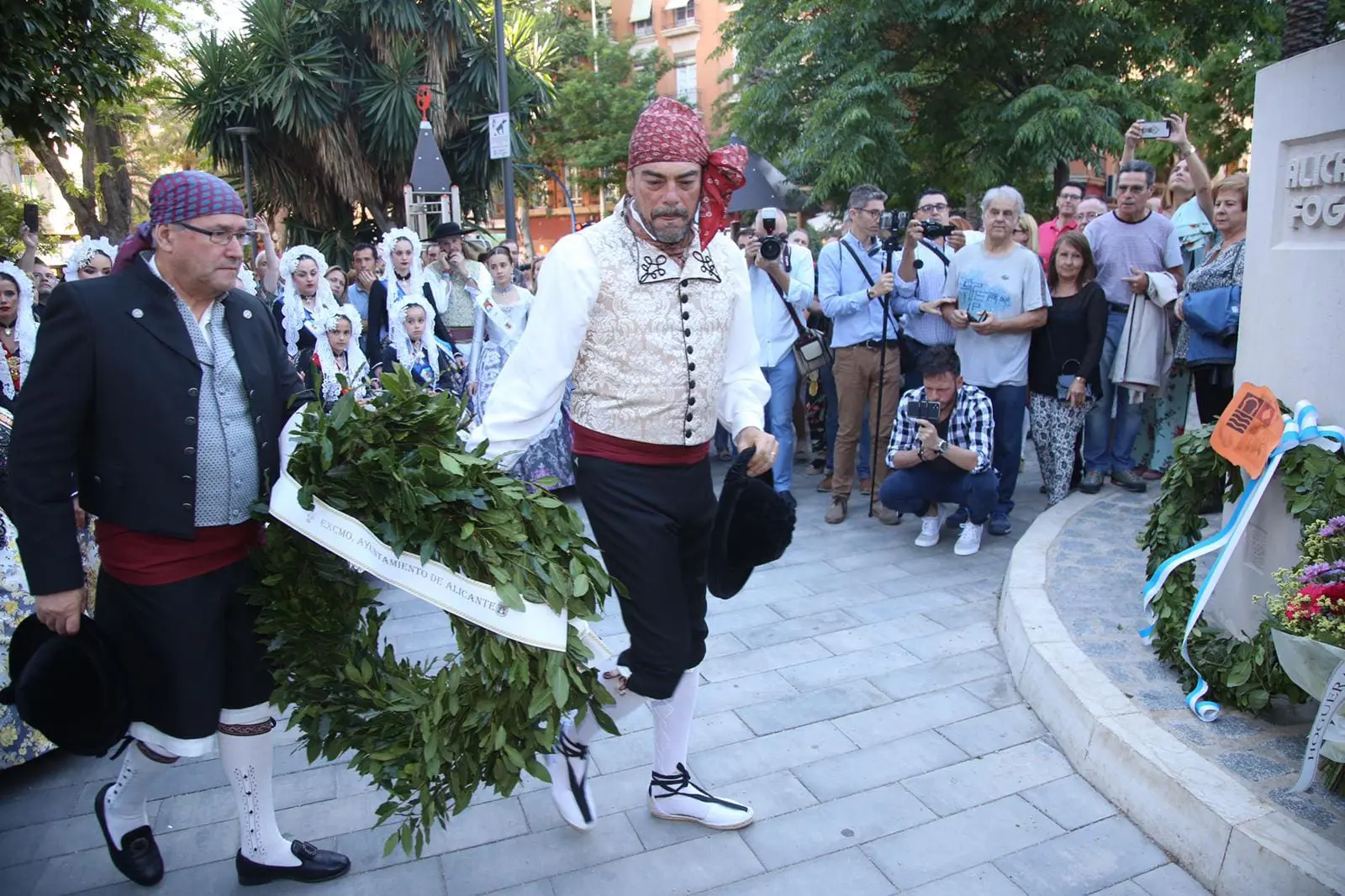 José María Lorente Satoca, presidente de la hoguera Carolinas Altas, ha ejercido como mantenedor en un acto que ha servido como prólogo al Desfile del Pregón. En su intervención ha recordado, especialmente, «a quienes nos han dejado en este año, el posterior al significado 90 Aniversario». Después de la intervención de Lorente, han sido las Belleas del Foc adulta e infantil -Isabel Bartual Fernández y Noelia Vinal Rondón- quienes han depositado una corona de laurel ante el monumento, original de Pepe Gutiérrez.