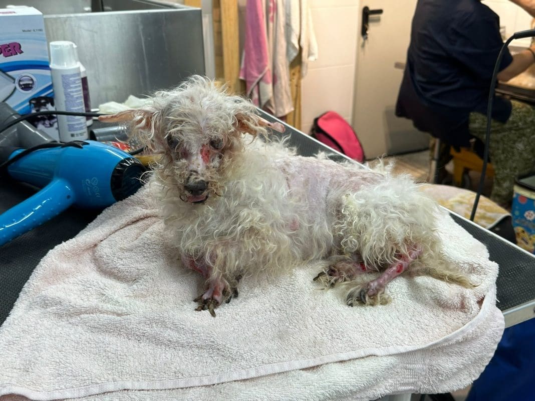 El animal fue hallado en la calle Dénia acompañado de otro perro que falleció a las pocas horas de ser localizado debido a la situación de deterioro en la que se encontraba.