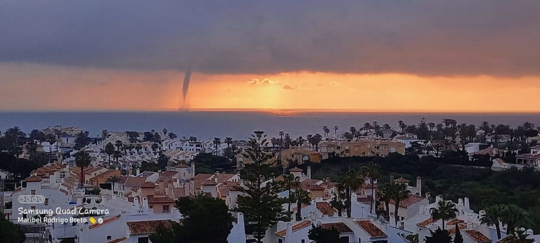 Tras una fuerte tormenta que ha descargado agua e incluso algo de granizo en la localidad, se ha dejado ver una impresionante manga marina frente a la costa.