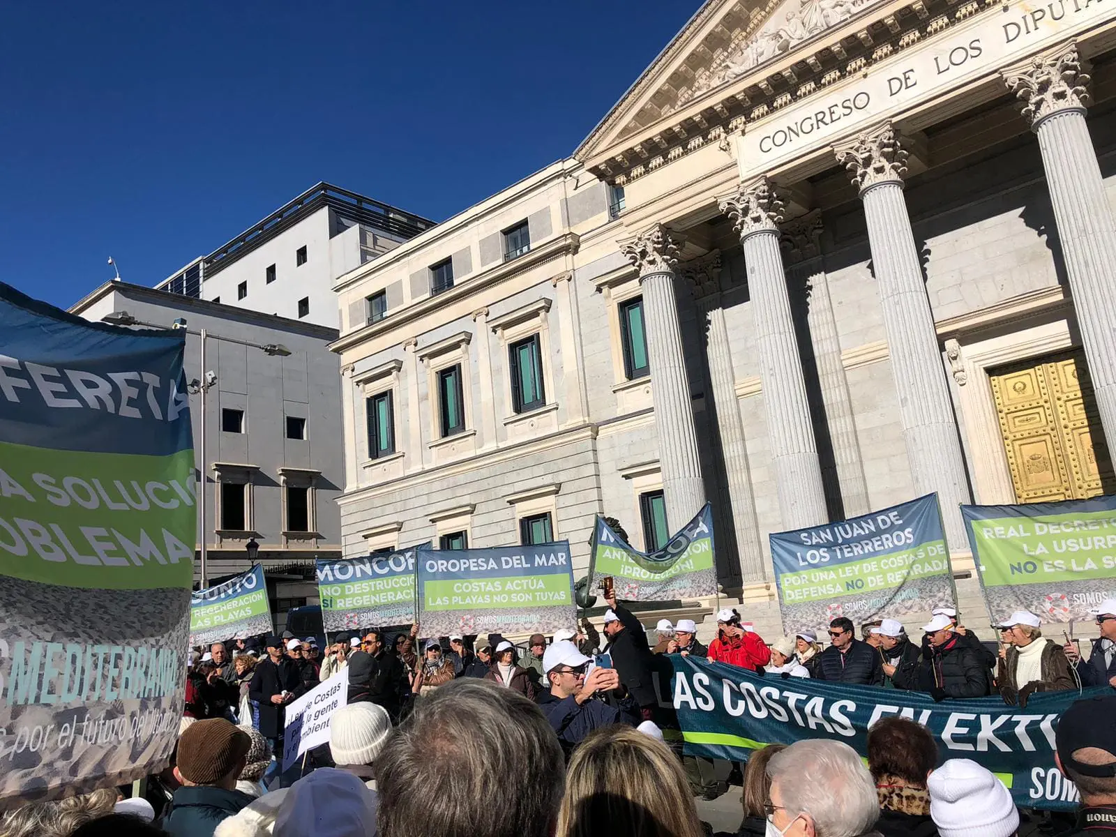 En la mañana de hoy, diferentes Asociaciones de toda España bajo el paragüas de «SomosMediterrania«, incluyendo varias de la Comunitat Valenciana, además del Cantábrico, Galicia o Baleares, han llevado una protesta pidiendo la reforma de la Ley de Costas bajo el lema principal de «Las costas en extinción SÍ tienen solución«.