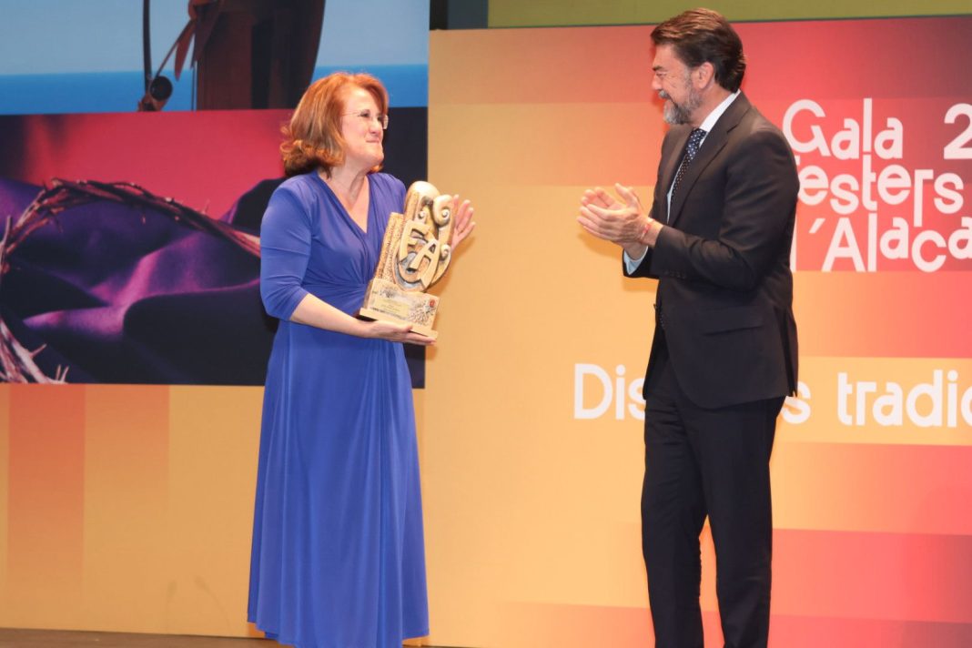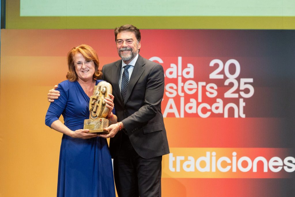 María José Molina Birlanga recibía anoche de manos del alcalde de Alicante, Luis Barcala, el Premio José Ángel Guirao a una trayectoria festera, convirtiéndose en la primera mujer en obtener este reconocimiento desde su creación en 2002. La presidenta de la Comisión de Fiestas Patronales de San Agustín ha sido distinguida como referente en la ciudad por más de dos décadas de implicación en las celebraciones del barrio y su liderazgo en el tejido vecinal.