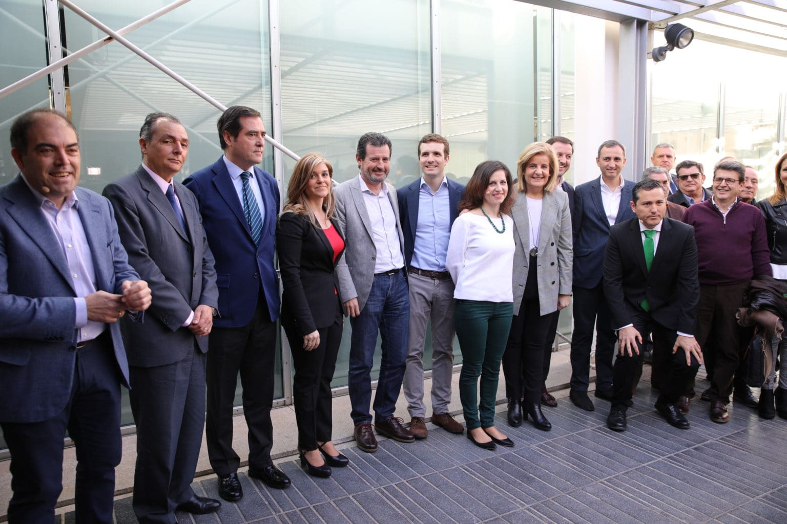 En la Convención del Partido Popular sobre Pymes y Autónomos que se celebró en Elche, además del presidente del Gobierno también participó la ministra de Empleo, Fátima Báñez, la presidenta del Partido Popular en la Comunidad Valenciana, Isabel Bonig, el presidente del PP en Alicante, José Císcar y como moderadora en una mesa redonda estuvo la secretaria general del PP en la Comunidad Valenciana, Eva Ortiz acompañada por el presidente de la Asociación de Trabajadores Autónomos (ATA), Lorenzo Amor, el presidente del CEPYME, Antonio Garamendi y los emprendedores Alina Sempere (Clínica Procuida) y Carlos Ledó (Idai Nature).