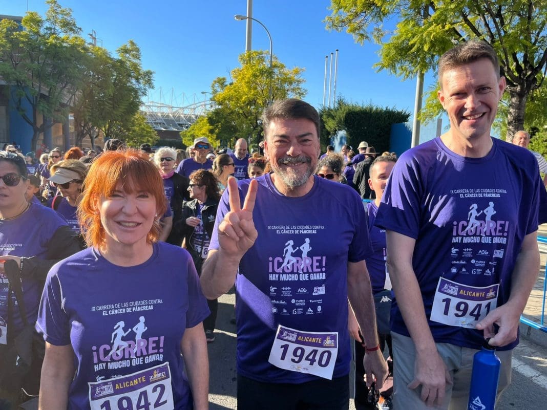 “Se ha conseguido visibilizar, por noveno año consecutivo, el cáncer de páncreas a través de una Fiesta como es la práctica deportiva en familia”, ha explicado este domingo el alcalde de Alicante, Luis Barcala, después de completar la caminata de cinco kilómetros de la Carrera de las Ciudades contra el Cáncer de Páncreas. El primer edil ha participado en esta prueba junto al vicealcalde Manuel Villar, y los concejales de Deportes y Bienestar Social, Toni Gallego y Begoña León, respectivamente.