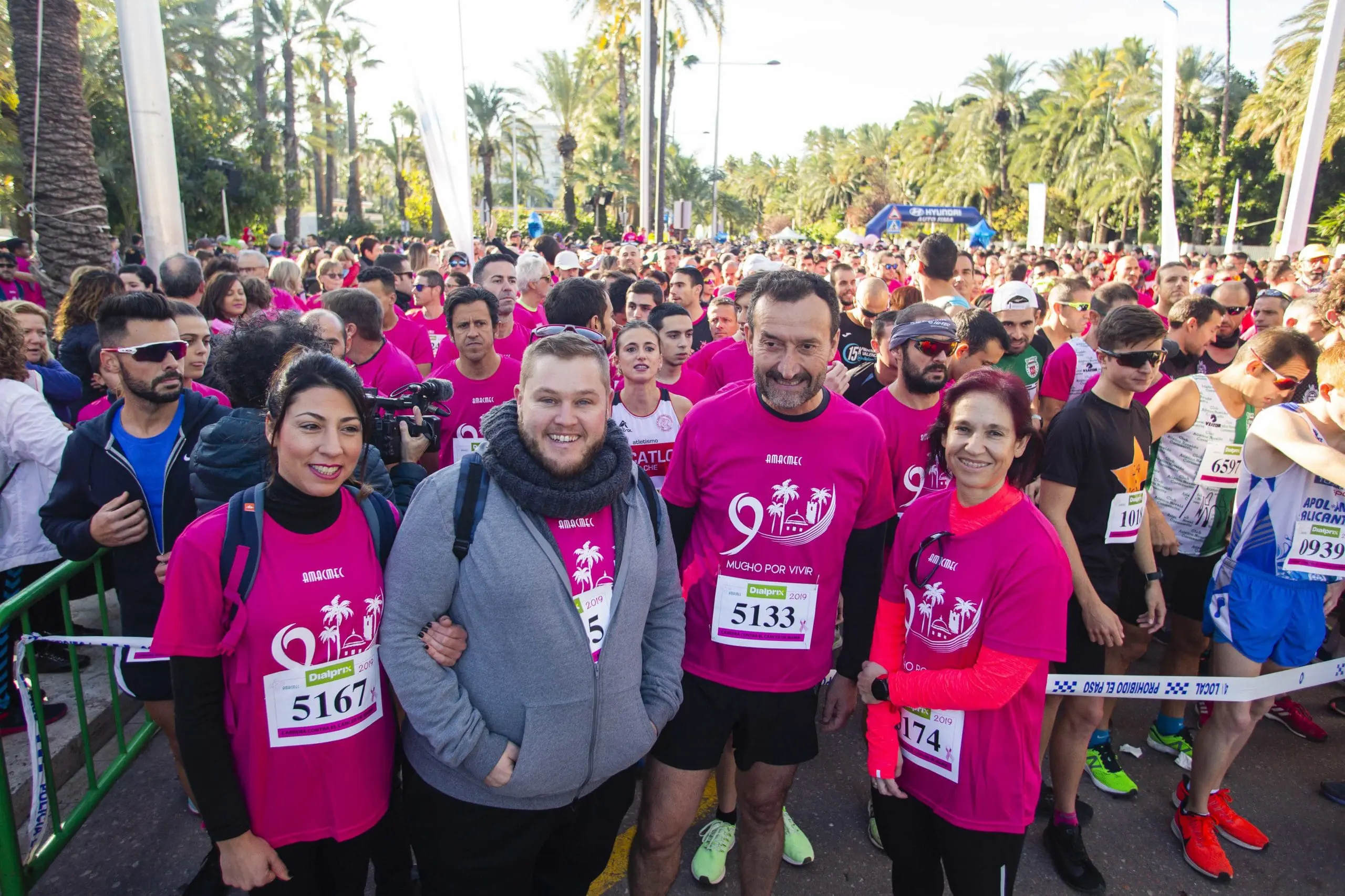 Desde muy temprano el color rosa y la energía positiva se han apoderado esta mañana de las calles de Elche. El Paseo de la Estación ha sido escenario principal de la XV edición de la carrera contra el cáncer de mama en la que más de 9.000 personas han participado en apoyo a la Asociación de Mujeres Afectadas por el Cáncer de Mama de Elche y Comarca (Amacmec), la encargada de recaudar los fondos que irán a parar a proyectos de investigación y a la atención de mujeres y familias afectadas por esta enfermedad. El frío no ha impedido a los participantes acudir a la cita en la que algunos han optado por realizar la carrera de diez kilómetros y otros han preferido realizar la marcha de tres kilómetros. Niños, jóvenes, adultos y mayores con sus dorsales se han volcado por esta buena causa, aunque, como es tradicional, más gente ha contribuido aún sin estar inscritos.