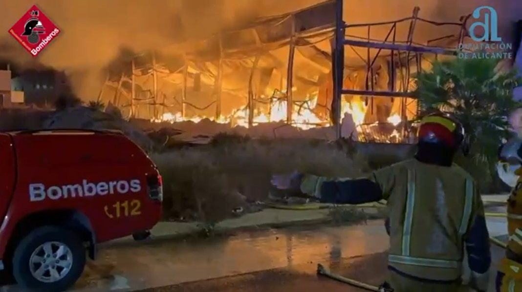 En estos momentos permanecen seis dotaciones de bomberos en el lugar, trabajando para completar la extinción definitiva de los puntos calientes. Del incendio se alertó a las 19:00 horas del martes y movilizó inicialmente un amplio operativo con nueve dotaciones procedentes de los parques de Elda, Villena e Ibi, además de unidades de mando, nodrizas y una autoescalera.